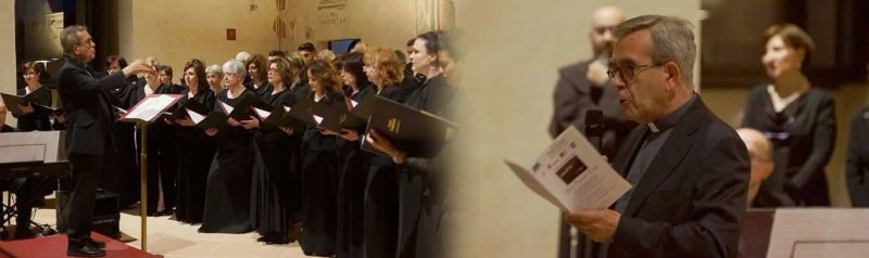 I cori concertanti: Laudesi Umbri di Spoleto e Corale Porziuncola della Basilica di Santa Maria degli Angeli, accompagnati all’organo dal Maestro Biagio Quaglino.