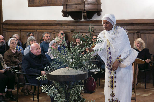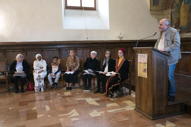 ASSISI – Spirito di Assisi nel segno delle donne. Sono state infatti le rappresentanti di varie religioni le protagoniste del momento di preghiera interreligiosa svoltosi il 27 ottobre pomeriggio nel Refettorietto della Porziuncola, in collegamento con l’iniziativa del Santo Padre in San Pietro. Silvina Chemen della comunità Ebraica Bet-el in diretta da Buenos Aires, Maymouna Abdel Qader, del Centro culturale islamico di Perugia, Marinella Bulletti della Comunità Baha’i di Perugia, Mihaela Heisu, della parrocchia ortodossa romena di Perugia, (Kuhlo) Rosa Welday Tekle della chiesa ortodossa Tewahedo di Eritrea e Irene Dunn della Congregazione anglicana di Assisi hanno pregato per la pace e condiviso con i partecipanti le loro riflessioni, in occasione del trentasettesimo anniversario dello storico incontro interreligioso del 27 ottobre del 1986, voluto da San Giovanni Paolo II. “Assisi è l’emblema della garanzia della pace. Siamo eredi di un padre comune, figli e figlie di una storia che ci ha pensate insieme nella pace. In tutto il mondo, in tutti i luoghi, moschee, chiese, università e altri centri di incontro si persegua il progetto di pace di Dio su questa terra e anche da Assisi le nostre voci sono unite”, le parole di Chemen. “Fa di noi uno strumento per la pace, affinché le sofferenze siano dimenticate, soprattutto oggi in Terra Santa”, l’appello di Maymouna Abdel Qader. Tra i momenti più significativi della cerimonia, la distribuzione di ramoscelli d'ulivo da parte di un bambino, a tutti i presenti e alle esponenti religiose che, simbolicamente, lo hanno piantumato in segno di speranza.