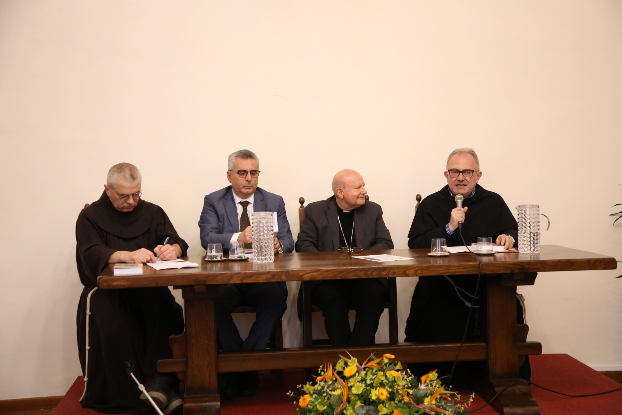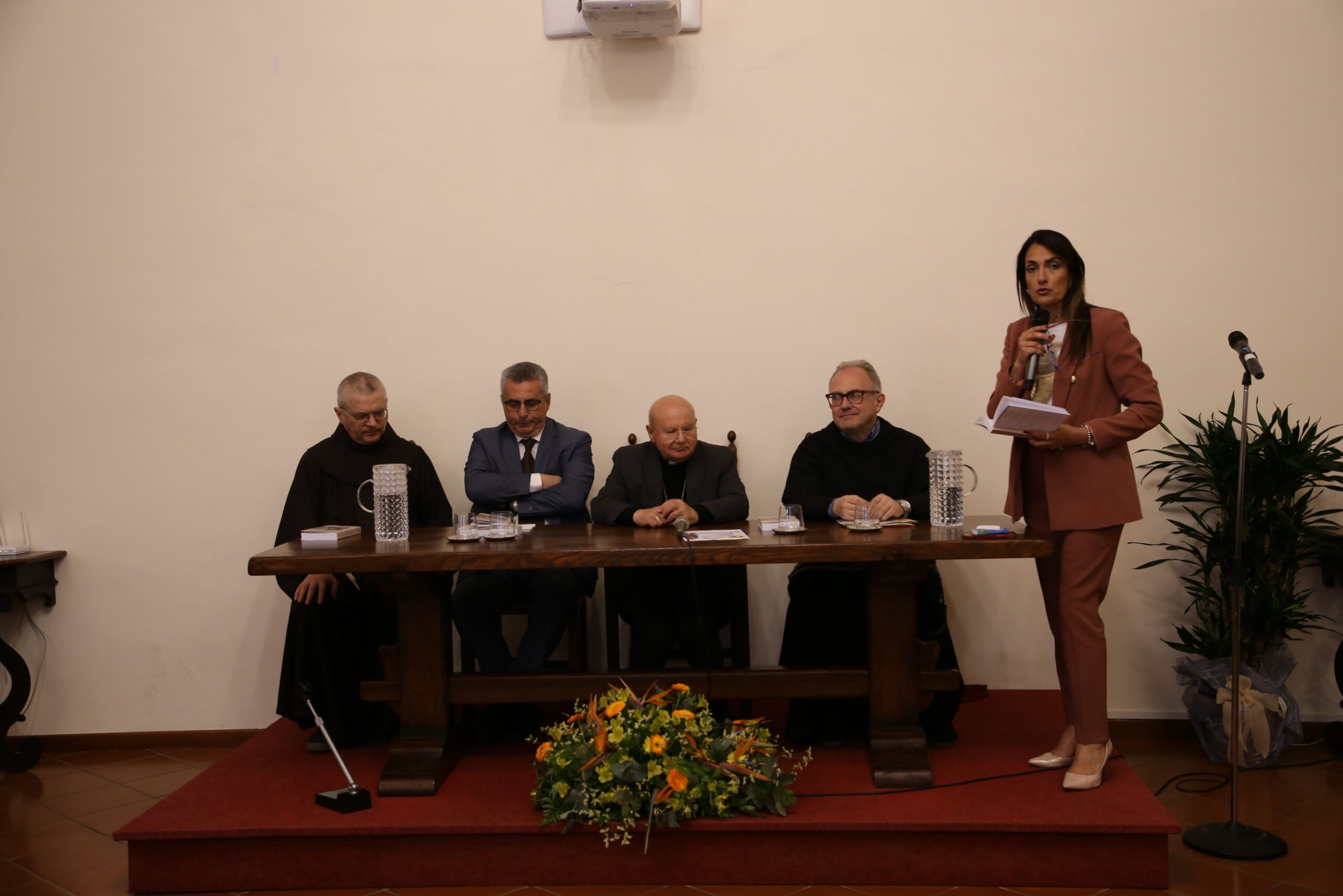 ASSISI - Nell'ambito della serie di iniziative per festeggiare il sesto anniversario del Santuario della Spogliazione è stato anche presentato, sabato pomeriggio 20 maggio nella Sala della Spogliazione, il libro “Francesco e i vescovi di Assisi, storia di un rapporto” di padre Felice Autieri, presente insieme a padre Pietro Messa, docente di storia del francescanesimo alla Pontificia Università Antonianum di Roma, al professore Nicolangelo d’Acunto, ordinario di storia medioevale dell’Università Cattolica del Sacro Cuore di Milano, al vescovo delle diocesi di Assisi - Nocera Umbra - Gualdo Tadino e di Foligno, monsignor Domenico Sorrentino. L'incontro è stato moderato dalla giornalista e conduttrice tv, Safiria Leccese.