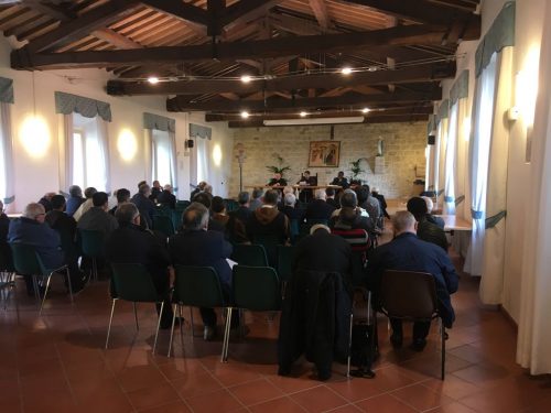 ASSISI – Si è svolto all’ex seminario vescovile di Nocera Umbra, l’incontro mensile del Clero. “La fraternità speciale dei sacerdoti e dei diaconi, a servizio della comunione ecclesiale: il clima spirituale della seconda visita pastorale” è il tema trattato durante l’appuntamento da fra Matteo Siro, ministro provinciale della Provincia dell’Umbria dei frati minori cappuccini.