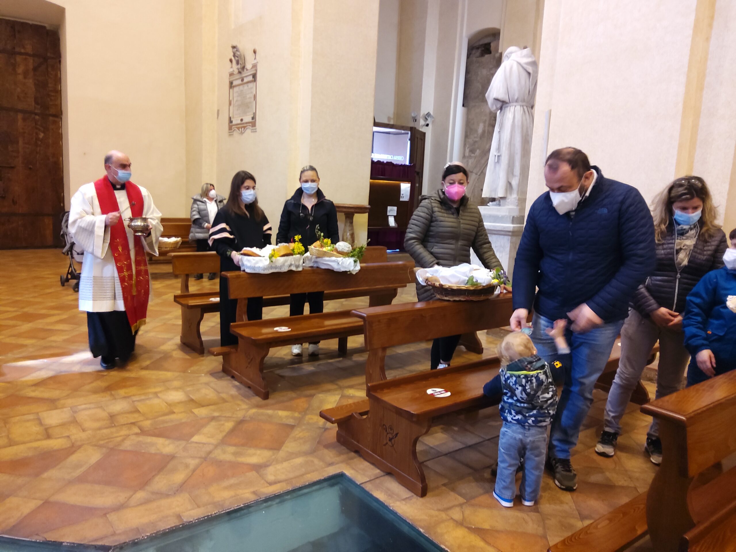 ASSISI - Sabato Santo, 3 aprile, continua l'adorazione, il silenzio, il sostare a pregare con una presenza discreta e sempre rispettosa delle condizioni attuali e nel pomeriggio come di consueto una nota familiare e lieta, un segno di rendimento di grazie al Signore, Il primo respiro verso una tomba che sta per aprirsi e darci la vita nella Pasqua. In cattedrale si è tenuta la consueta benedizione dei cibi pasquali. Certamente accompagnati da una nota più profonda di ringraziamento perché anche in questo tempo di precarietà, di crisi, di difficoltà economiche non mancherà sulla mensa il cibo lieto della Pasqua, mentre i nostri passi si affrettano verso la tomba vuota e i nostri occhi alla luce del risorto.