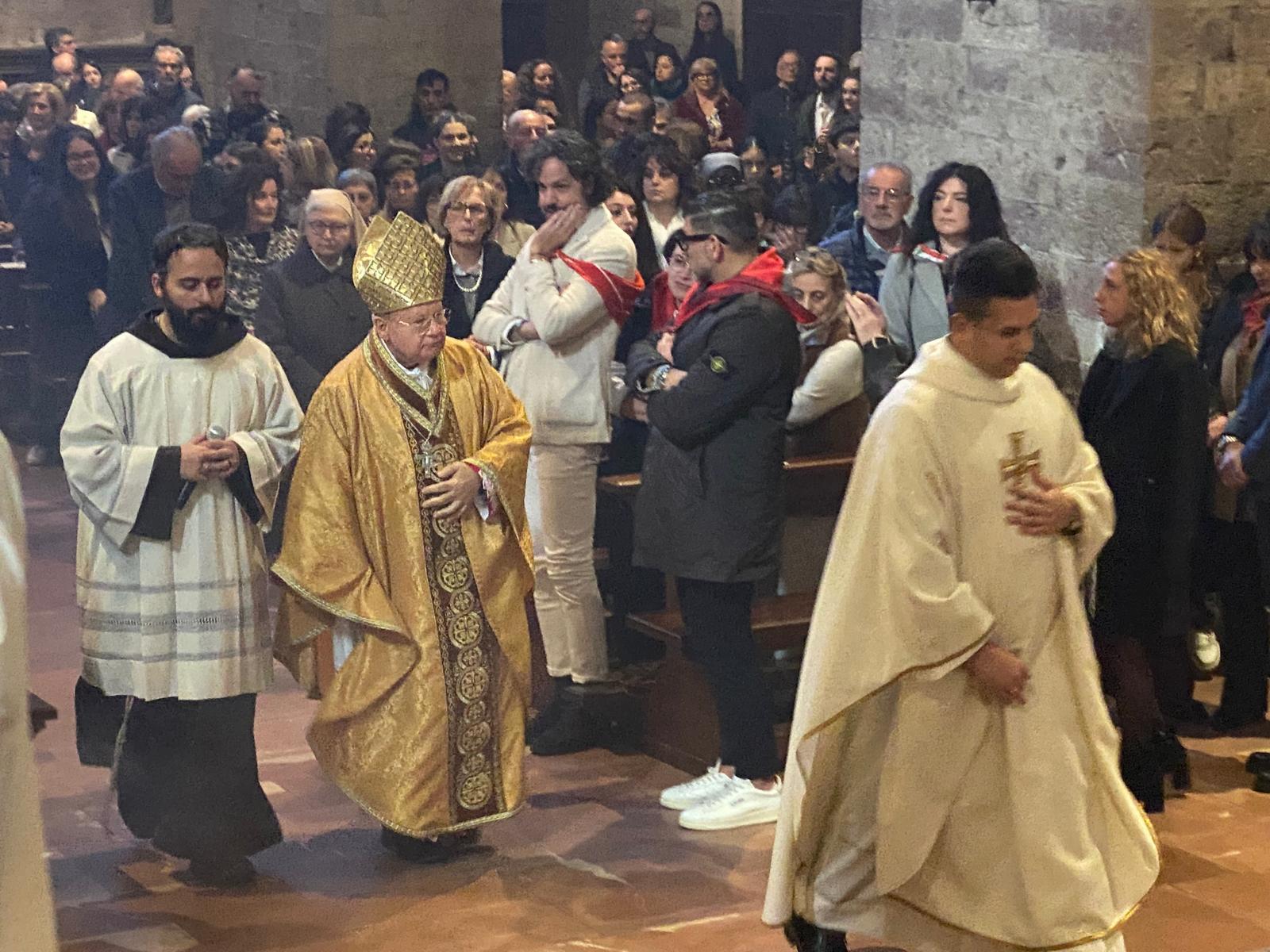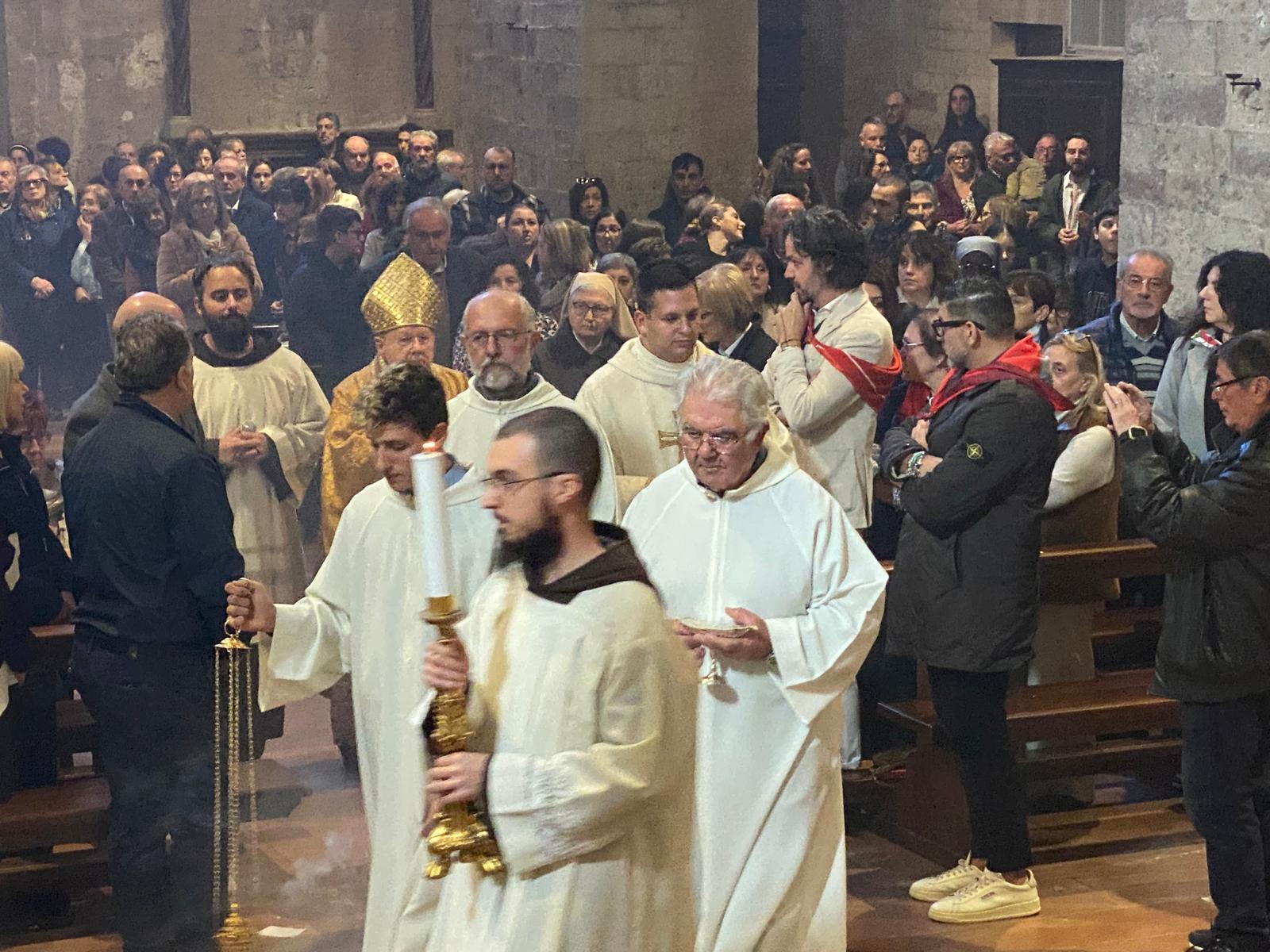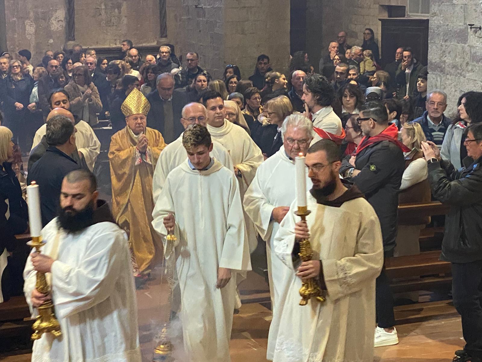 “Ho scelto don Matteo – ha aggiunto - anche perché gli avevo dato un incarico che ancora conserva e che è quello di essere responsabile della Pastorale dei giovani e anche di Azione cattolica. La chiesa abbaziale di San Pietro è stata servita per tanti anni dai benedettini, che dobbiamo ringraziare di cuore, fino al caro don Massimo che è morto proprio in questa chiesa e che ricordiamo con tanto affetto”.