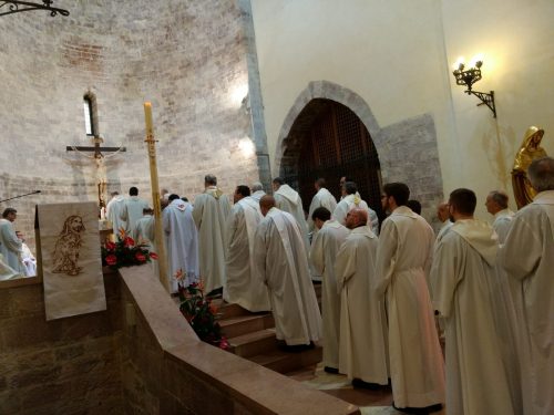 ASSISI – “Complici dello Spirito” è il titolo dell’intervento e di uno dei libri del vescovo monsignor Domenico Sorrentino che giovedì 5 aprile, al Santuario della Spogliazione nell’ambito del XXXIII Seminario sulla direzione spirituale a servizio dell’orientamento vocazionale organizzato dalla Conferenza episcopale italiana, ha incontrato centinaia di partecipanti. Alla presenza dei numerosissimi direttori spirituali, formatori, presbiteri, seminaristi, consacrati, operatori della pastorale giovanile, vocazionale, universitaria e famigliare, il vescovo si è soffermato sull’importanza della figura del vescovo Guido in riferimento al gesto spettacolare della spogliazione di Francesco che “ebbe l’ardore di accogliere e accompagnare Francesco”. Monsignor Sorrentino ha poi evidenziato come anche il Santo Pontefice, nel messaggio inviatogli il 16 aprile 2017 in occasione dell’imminente inaugurazione del Santuario, abbia sottolineato che “un aspetto bello del nuovo Santuario è dato dal fatto che, nell’evento della spogliazione di Francesco, emerge anche la figura di un Pastore, il vescovo Guido, che lo aveva probabilmente conosciuto, se non addirittura accompagnato nel suo cammino di conversione, ed ora lo accoglieva nella sua scelta decisiva. È un’immagine di maternità della Chiesa che merita di essere riscoperta, mentre la condizione giovanile, in un quadro generale di crisi della società, pone interrogativi seri che ho voluto mettere a fuoco indicendo un apposito Sinodo. I giovani hanno bisogno di essere accolti, valorizzati e accompagnati. Non bisogna temere di proporre a loro Cristo e gli ideali esigenti del vangelo. Ma occorre per questo mettersi in mezzo a loro e camminare con loro. Il nuovo Santuario acquista così anche il valore di un luogo prezioso dove i giovani possono essere aiutati nel discernimento della loro vocazione”. “Francesco – ha poi affermato monsignor Sorrentino – è l’uomo ecclesiale. C’è una stretta connessione tra radicalità evangelica ed ecclesialità. Il discernimento ecclesiale è un’esperienza di famiglia che è importante condividere”. Dopo il momento di catechesi è seguita la santa messa e nell’omelia il vescovo ha sottolineato che “c’è bisogno di cuori ardenti, testimoni, narratori che quando parlano dai loro occhi, dal loro viso, dal loro cuore si irradia la testimonianza del Vangelo. Dobbiamo diventare esperti di Gesù. Il nostro cuore torni a Gesù come atteggiamento e metodo pastorale”.