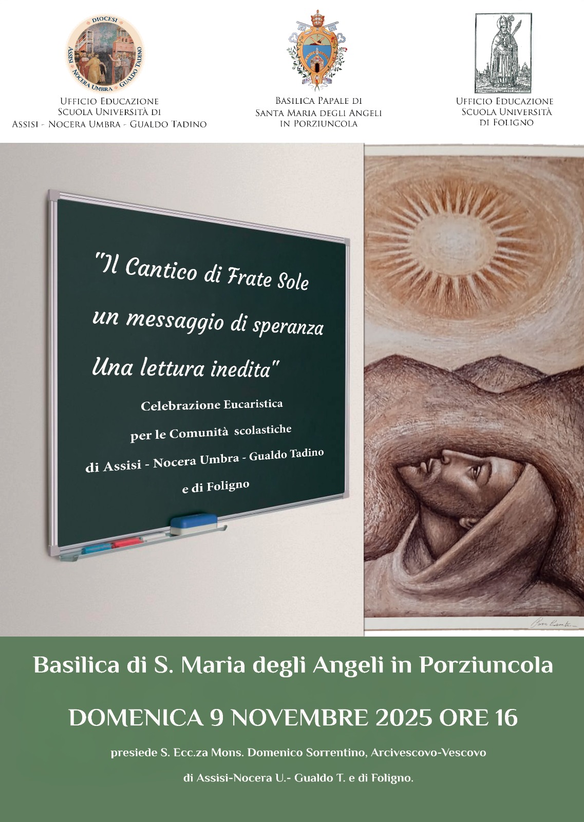 ASSISI – Domenica 9 novembre, festa della Dedicazione della Basilica Lateranense, nel pomeriggio il vescovo, monsignor Domenico Sorrentino, ha incontrato la comunità educativa delle due diocesi sorelle diocesi di Assisi – Nocera Umbra – Gualdo Tadino e di Foligno, nella Basilica di Santa Maria degli Angeli, per inaugurare l’anno scolastico.Dopo la santa messa celebrata nella basilica di Santa Maria degli Angeli, nel Refettorietto della Porziuncola … Continua a leggere MESSA D’INIZIO ANNO SCOLASTICO NELLA BASILICA DI SANTA MARIA DEGLI ANGELI »