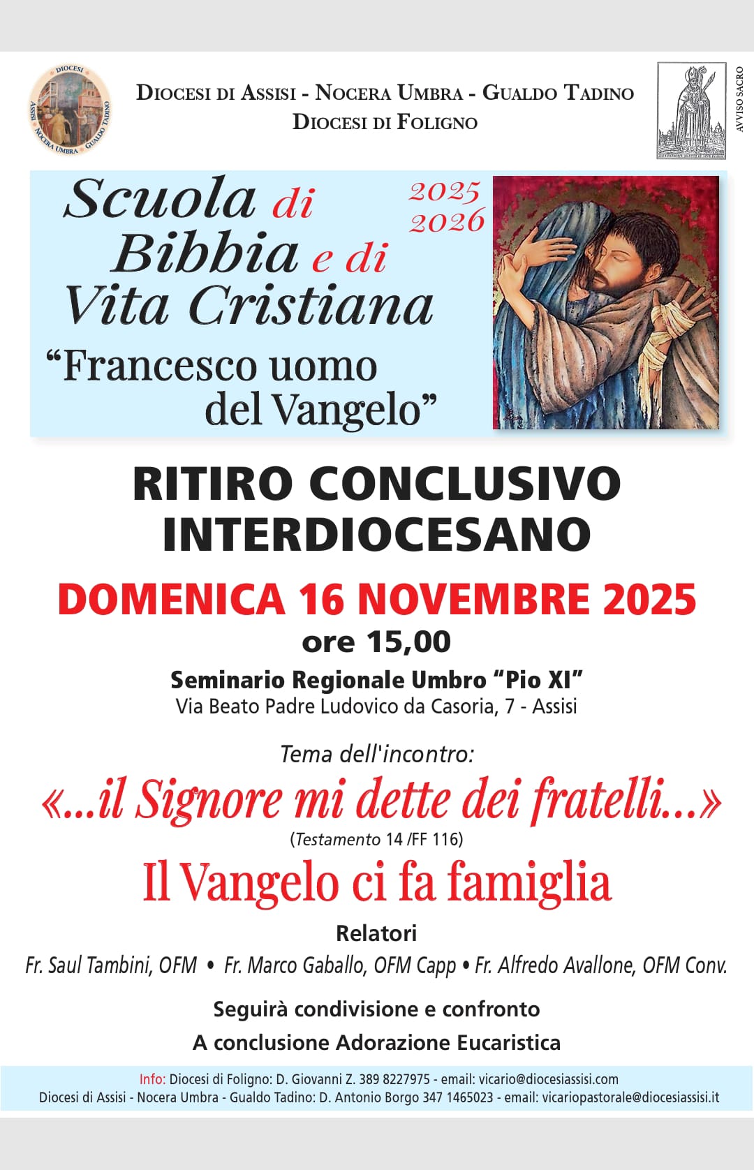 ASSISI – La prima ostensione pubblica e prolungata delle spoglie mortali di san Francesco ha raggiunto un traguardo straordinario: oltre 150mila prenotazioni da pellegrini che arriveranno da ogni angolo del mondo tra il 22 febbraio e il 22 marzo 2026. Un risultato che testimonia l’universalità del messaggio del Santo di Assisi e l’attrattiva senza tempo della sua figura.«È sempre un grande stupore – ha dichiarato … Continua a leggere OSTENSIONE DELLE SPOGLIE MORTALI DI SAN FRANCESCO: OLTRE 150MILA PRENOTAZIONI DA TUTTO IL MONDO