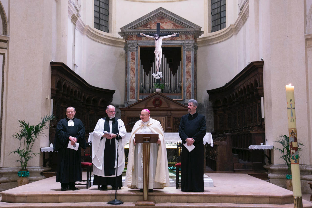 ASSISI - Si sono concluse mercoledì 25 gennaio nella cattedrale di San Rufino le celebrazioni della Settimana di preghiera per l’unità dei cristiani. “La giustizia che ristabilisce la comunione” è stato il tema della veglia presieduta del vescovo monsignor Domenico Sorrentino a cui hanno partecipato padre Petru Heisu, della chiesa ortodossa rumena, il rev. Tim Daplyn della chiesa anglicana e il pastore Pawel Gaiewski della chiesa valdese.