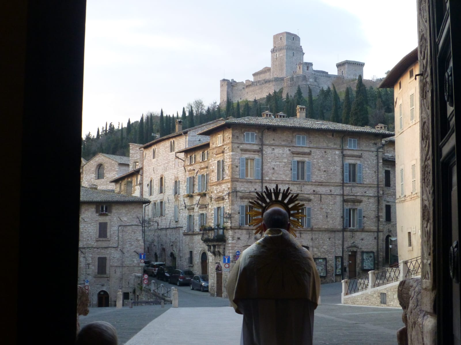 ASSISI – Da Assisi ancora preghiere e suppliche a Dio per invocare la fine della pandemia da coronavirus. Nei giorni scorsi il parroco don Cesare Roberto Provenzi, dopo avere celebrato i vespri nella cattedrale di San Rufino si è affacciato sul sagrato ed ha benedetto gli abitanti della città di Assisi e il mondo intero con il Santissimo Sacramento esposto nell’ostensorio. Un messaggio di vicinanza e solidarietà nei confronti di chi soffre e di coloro che sono impegnati per assistere i malati e fermare il contagio.
