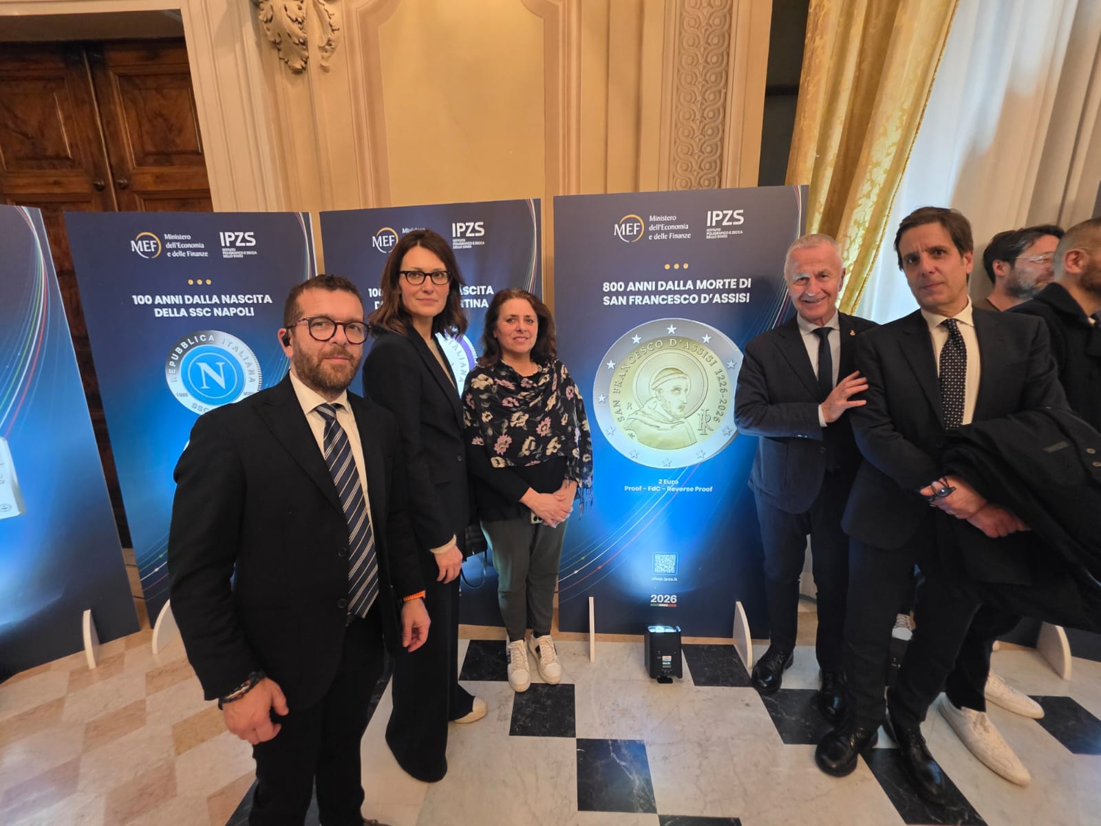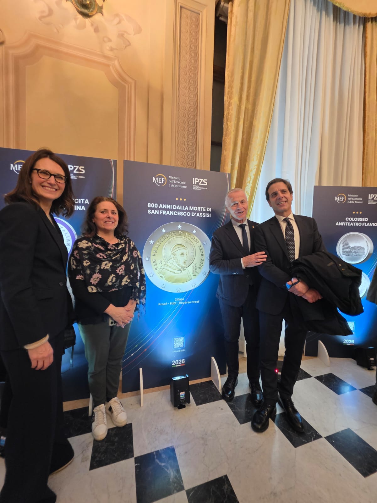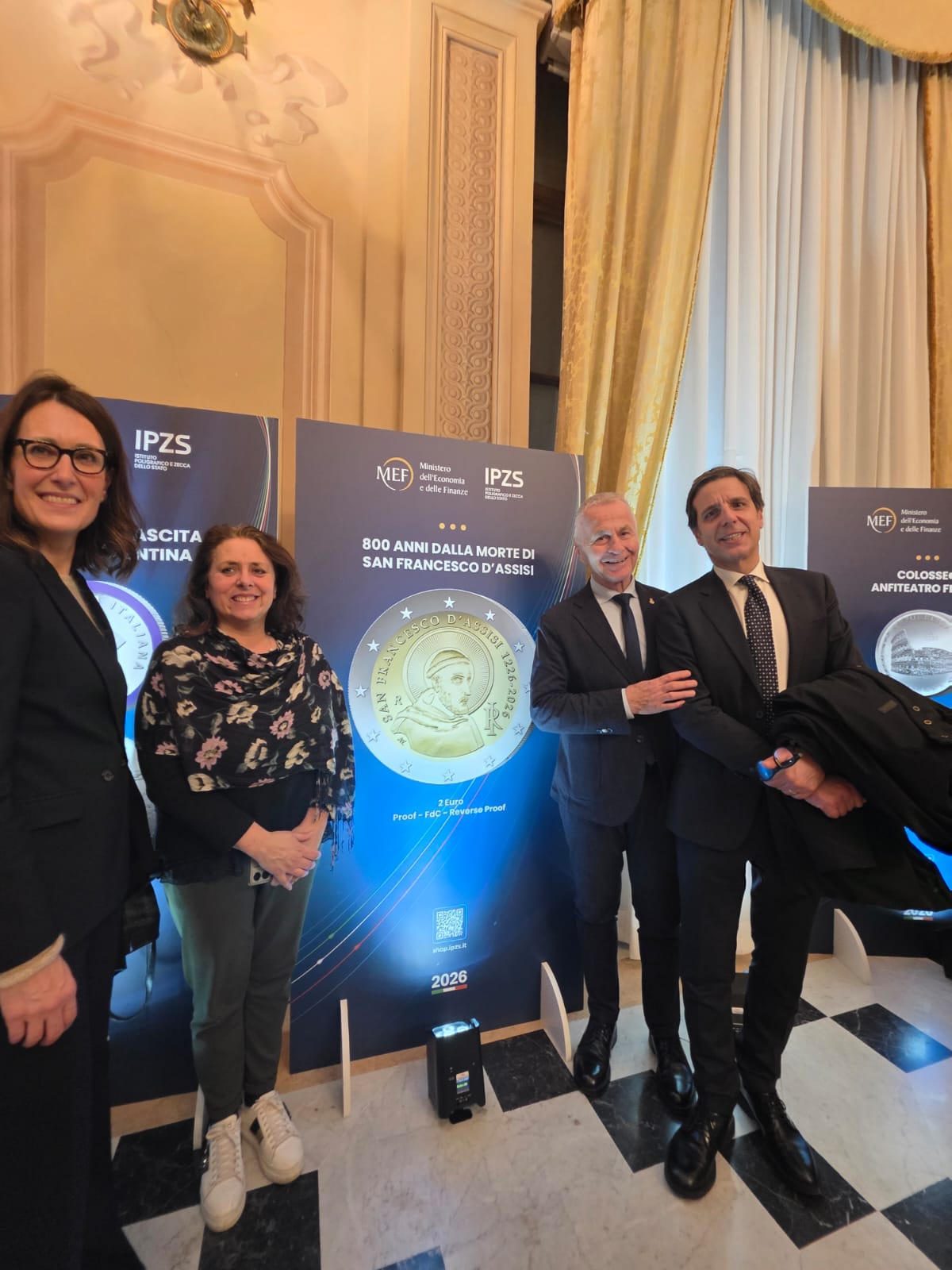 All’evento sono intervenuti tra gli altri il Ministro Giancarlo Giorgetti, il Presidente e l’Amministratore delegato dell’Istituto Poligrafico e Zecca dello Stato (IPZS) Paolo Perrone e Michele Sciscioli. Hanno presenziato anche rappresentanti della Diocesi e il sindaco della Città di Assisi, Valter Stoppini
