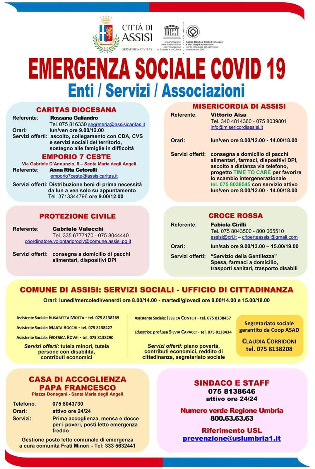 ASSISI – “Non ho niente da mangiare per i miei figli”. È questa la frase agghiacciante di un padre di famiglia che si è rivolto alla Caritas diocesana, tra gli enti ai quali far riferimento per qualsiasi necessità legata all’“Emergenza sociale Covid-19”. “In questa fase stiamo registrando un costante aumento di richieste di aiuto e sostegno economico – spiega la direttrice della Caritas Rossana Galiandro - . La situazione è davvero difficile perché ormai è da troppo tempo che tante attività del nostro territorio, soprattutto quelle legate al turismo, sono chiuse”. Per questo la Caritas è in prima linea con i servizi di ascolto, i Centri di volontariato sociale e i servizi sociali del territorio (075/816330 - email segreteria@assisicaritas.it dal lunedì al venerdì dalle ore 9 alle ore 12); l’Emporio solidale diocesano 7 Ceste, (via Gabriele D’Annunzio n. 8 a Santa Maria degli Angeli), per la distribuzione di beni di prima necessità (solo su appuntamento, 371/3344796 dal lunedì al venerdì dalle 9 alle 12 - email emporio7ceste@assisicaritas.it); la Casa di accoglienza Papa Francesco (piazza Donegani a Santa Maria degli Angeli), per la prima accoglienza, le mense e le docce per i poveri, i posti letto per l’emergenza freddo (075/8043730 attivo 24 su 24 ore – La gestione del posto letto è a cura della Comunità dei Frati minori tel. 3335632441).