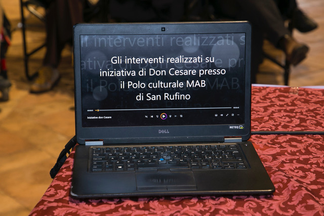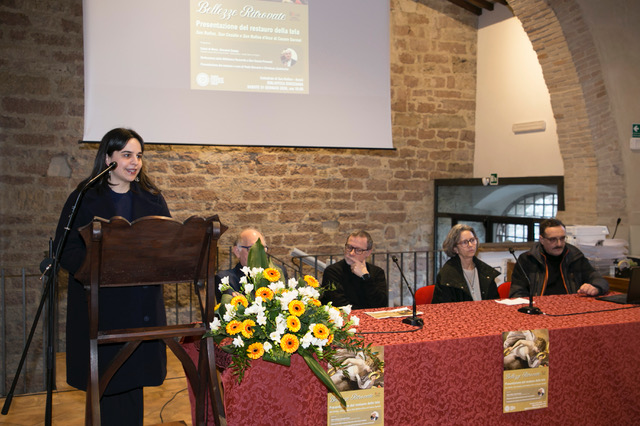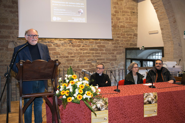 Dopo la dedicazione, negli stessi saloni della biblioteca diocesana, Paolo Biscarini e Christiane Zschiesche, hanno presentato il restauro della tela “San Rufino, San Cesidio e San Rufino d’Arce”, opera di grande valore storico e devozionale, realizzata dal pittore seicentesco Sermei, il cui recupero è stato fortemente voluto proprio da don Cesare e che si trova nella navata di sinistra della cattedrale.