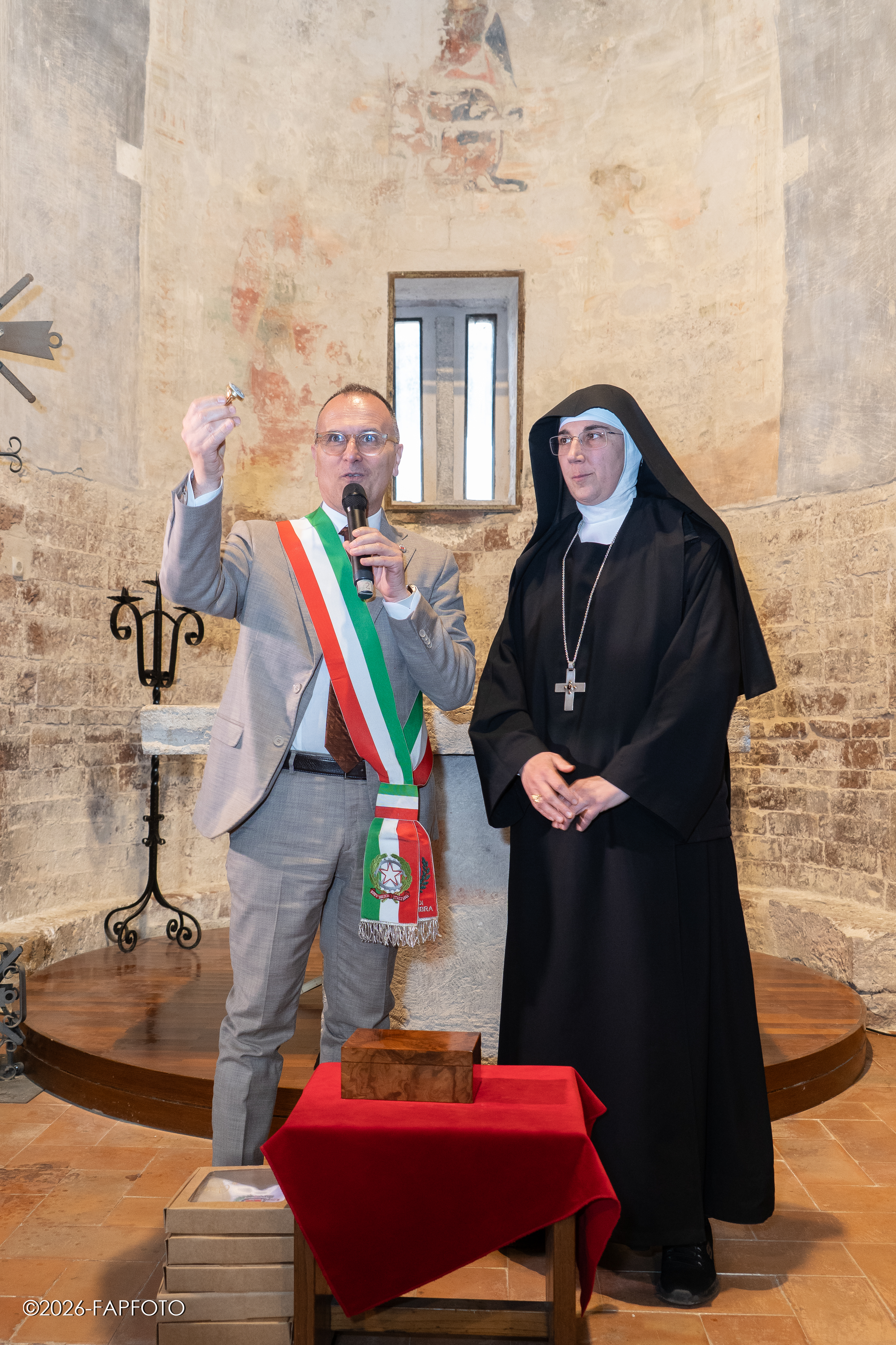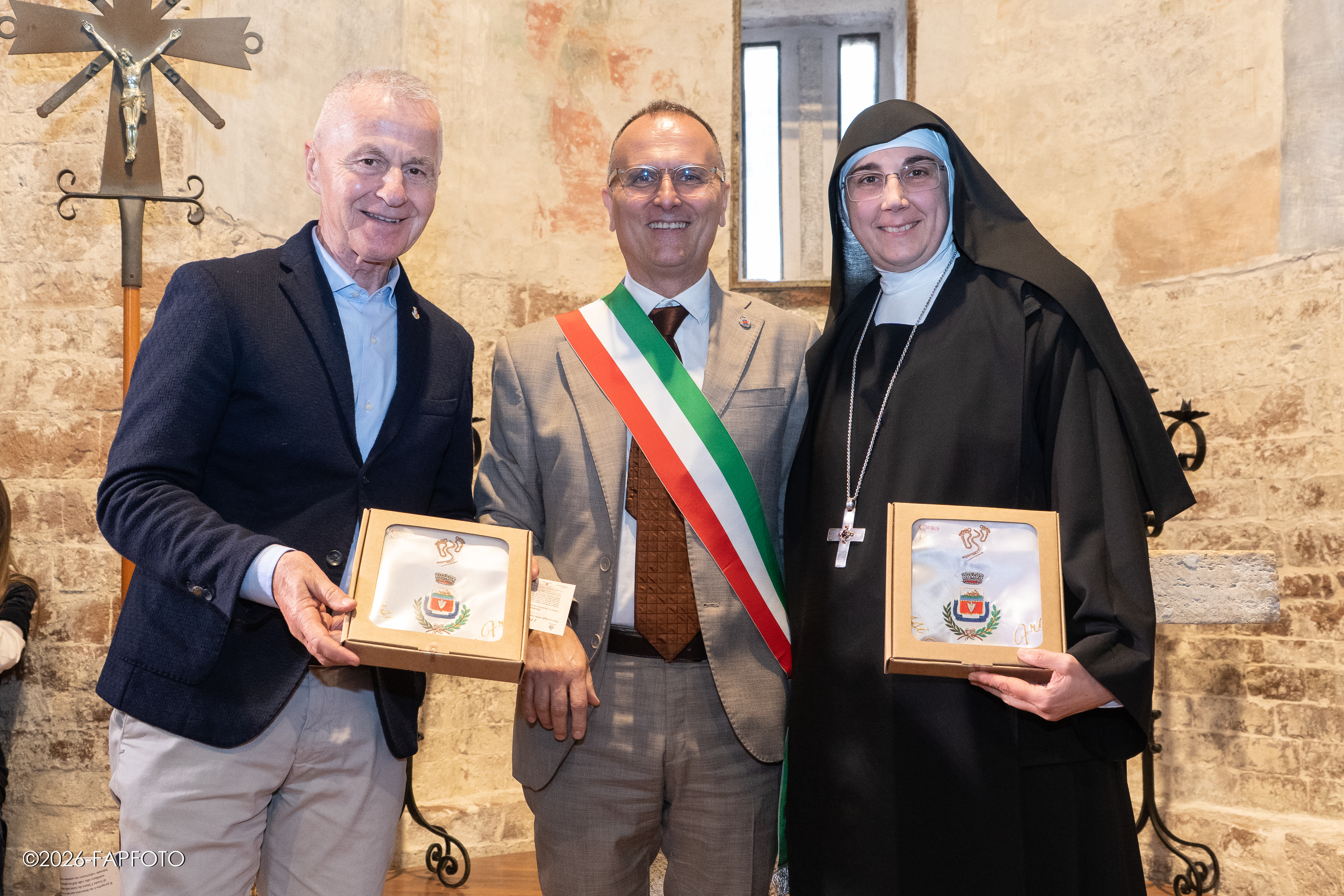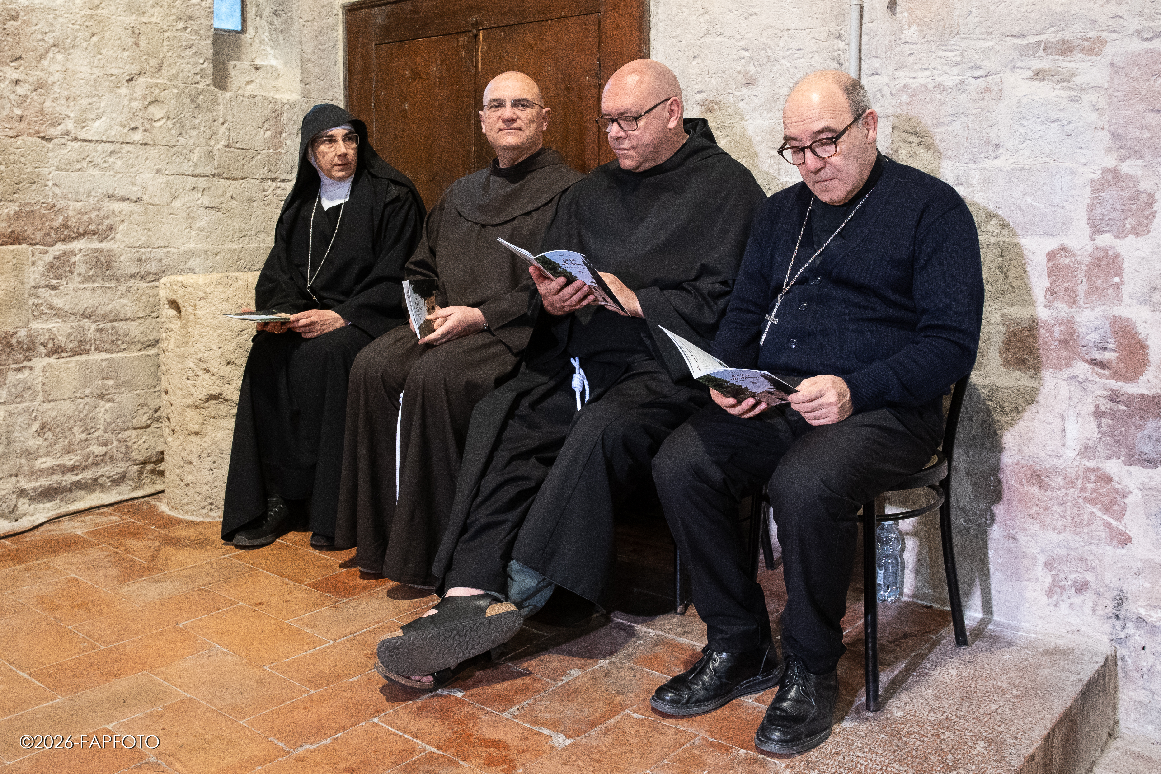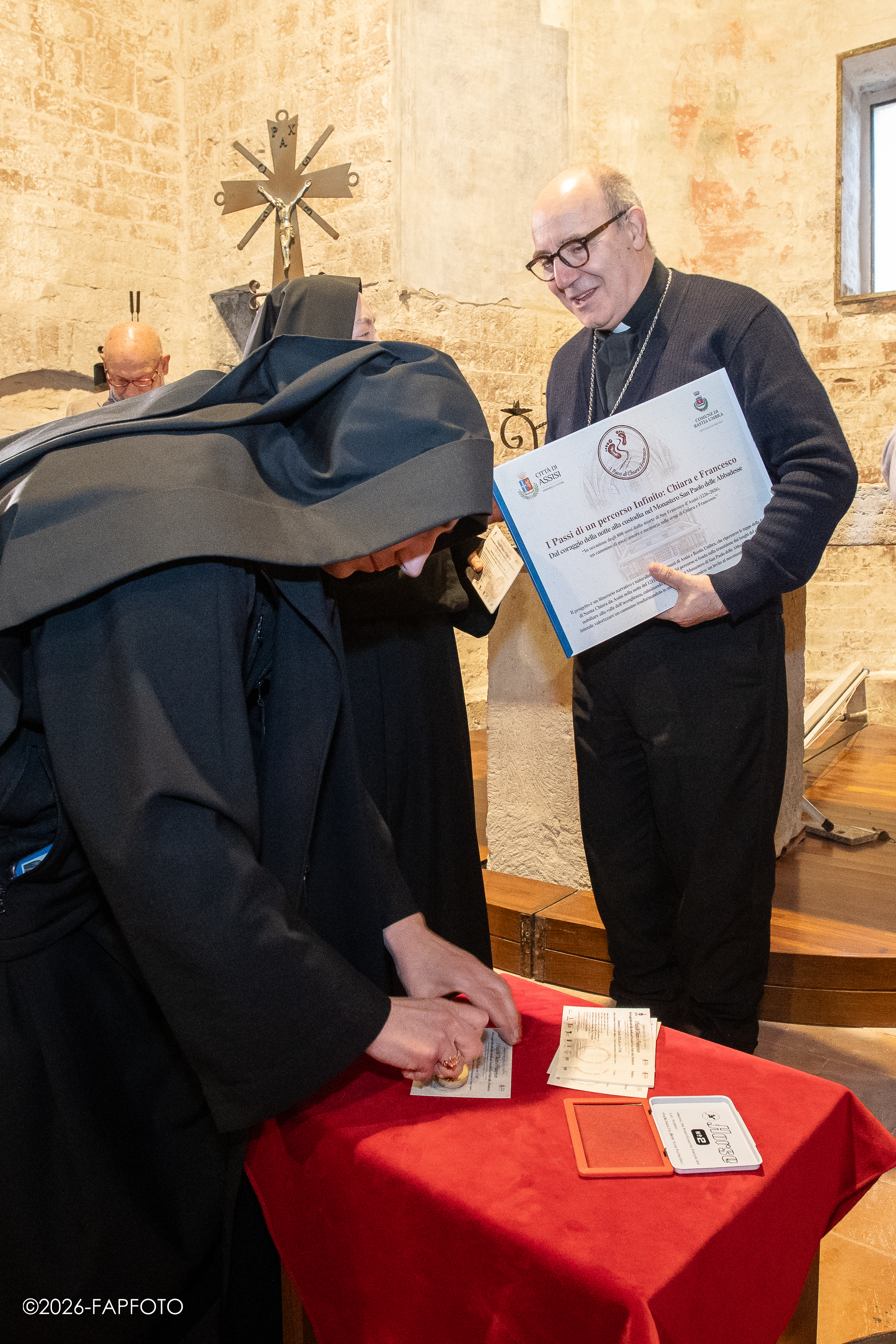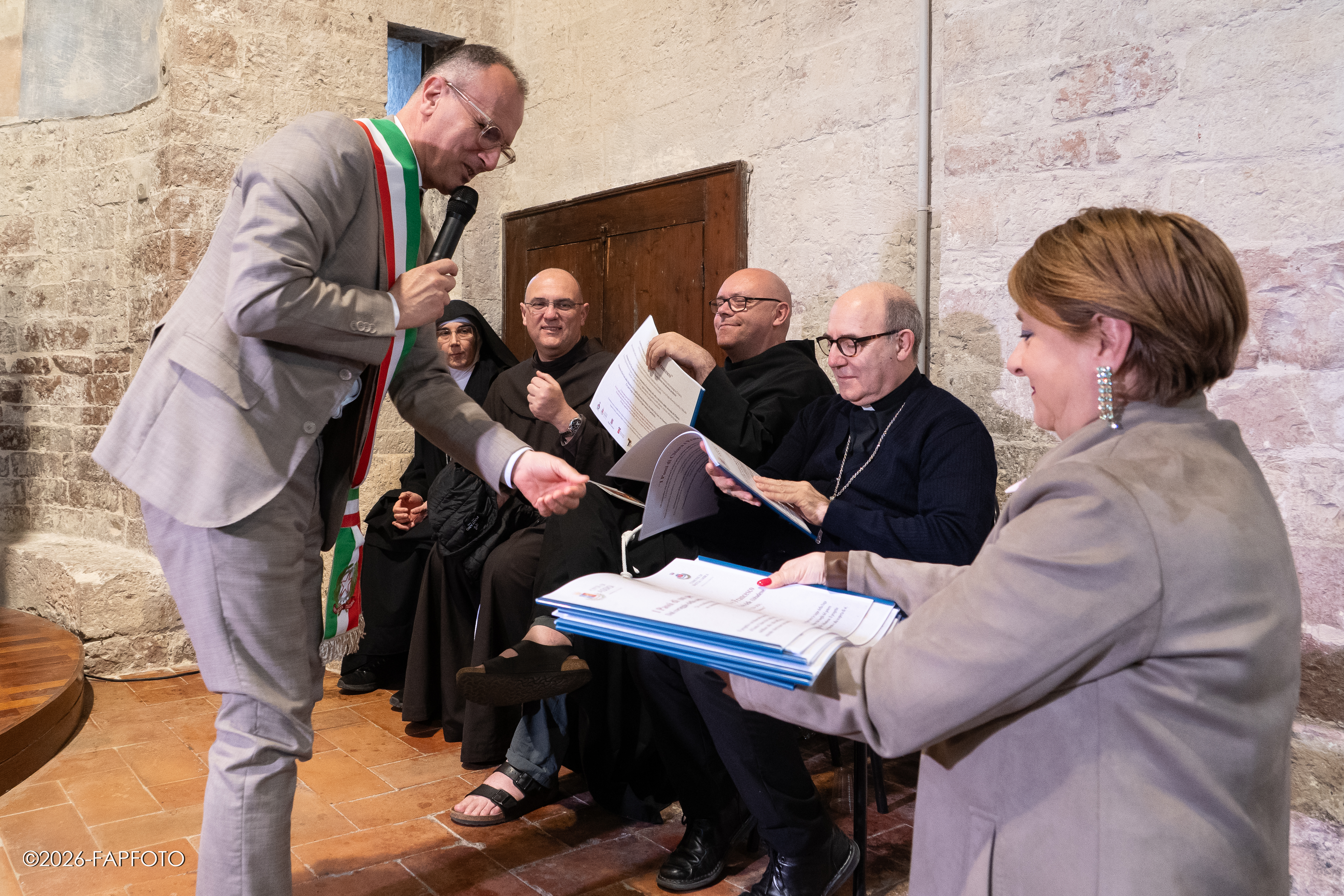 Alla presentazione sono intervenuti Erigo Pecci, sindaco di Bastia Umbra, Valter Stoppini, primo cittadino di Assisi, fra Marco Moroni, custode del Sacro Convento di Assisi, padre Massimo Travascio, custode della Porziuncola, madre Noemi Scarpa, badessa del Monastero benedettino di Sant’Anna a Bastia Umbra, Stefano Brufani, professore all’Università degli Studi di Perugia L’incontro è stato coordinato dall’Assessore alla cultura del Comune di Bastia Umbra Paolo Ansideri.