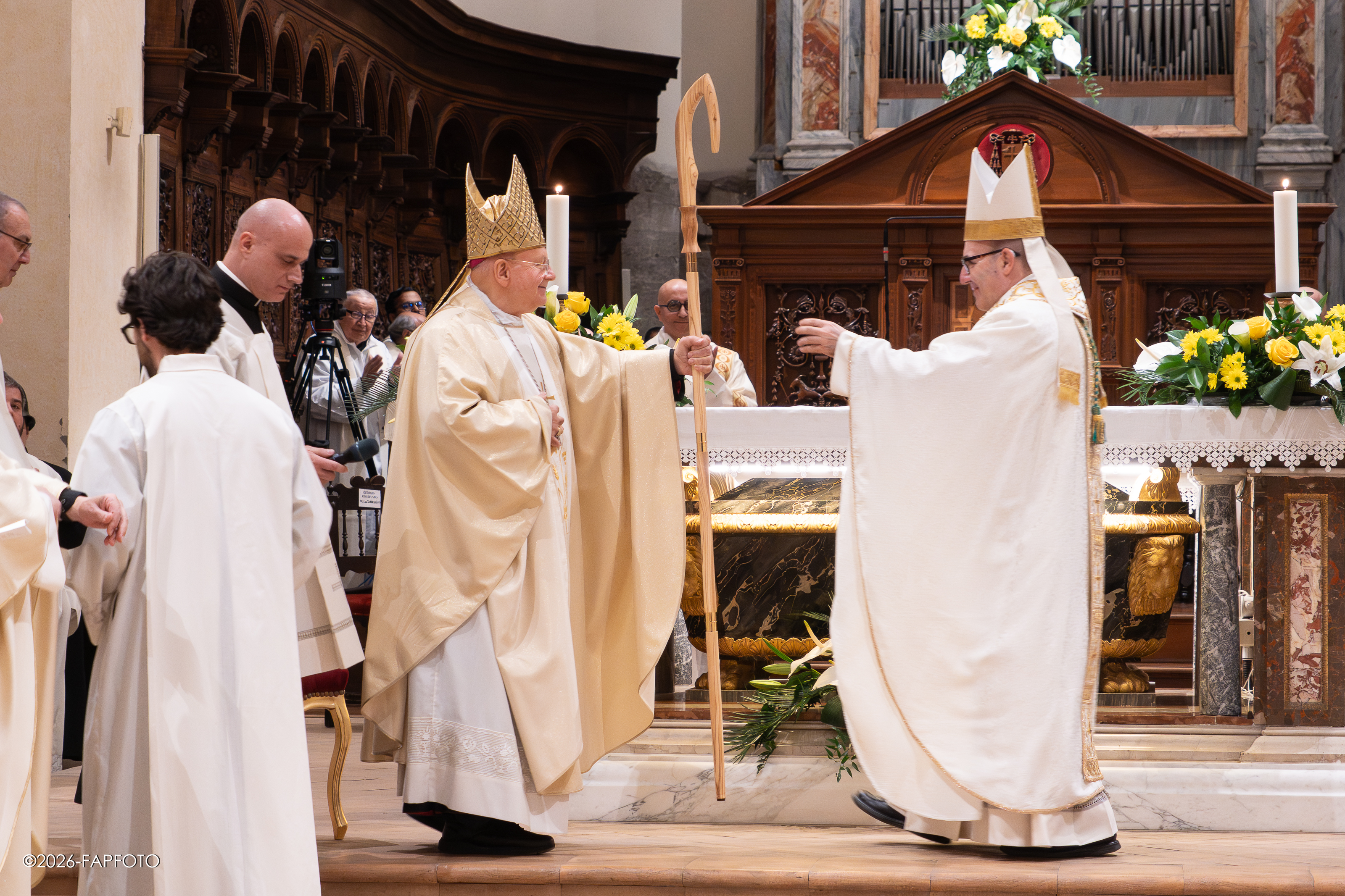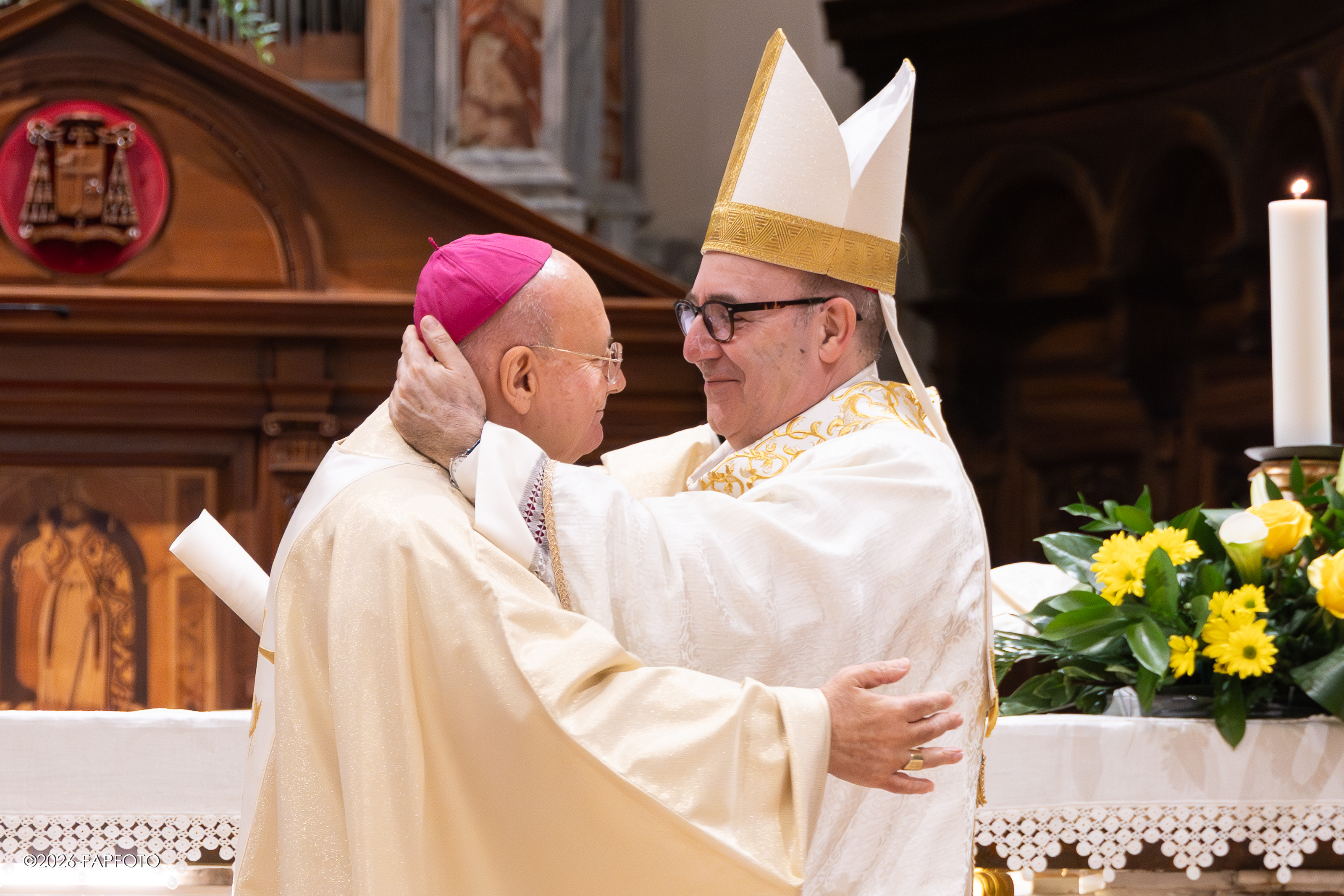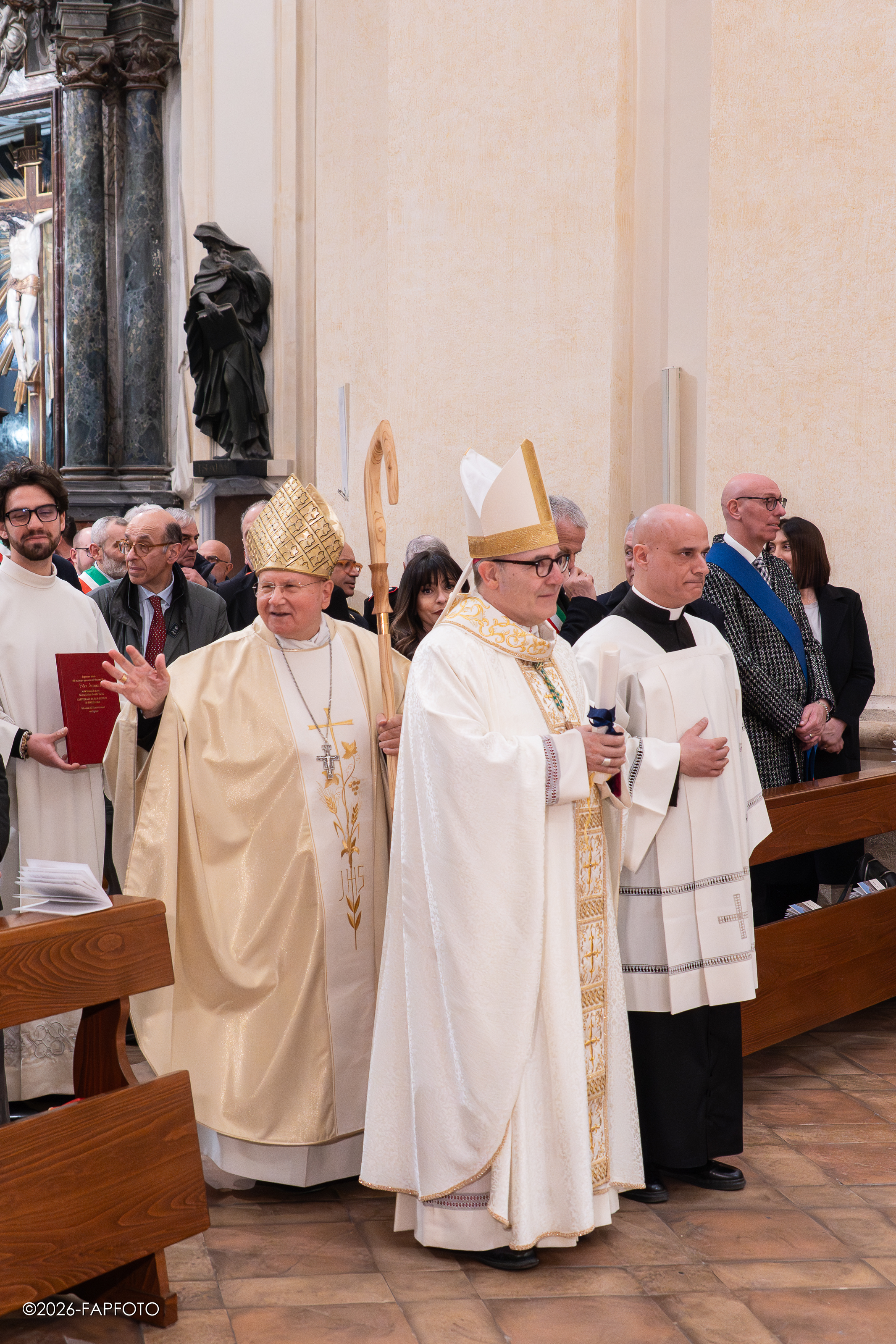 Il vescovo ha baciato l’altare maggiore e indossando la mitria e tenendo il pastorale è salito sulla cattedra di San Feliciano. A seguire alcuni fedeli religiosi e presbiteri lo hanno raggiunto per rendergli omaggio e obbedienza a nome della diocesi.