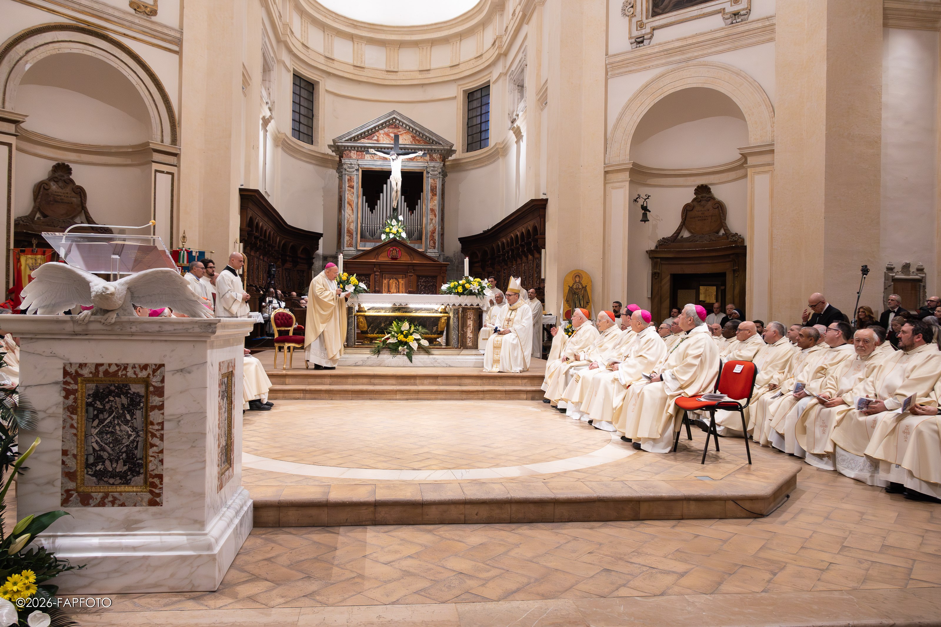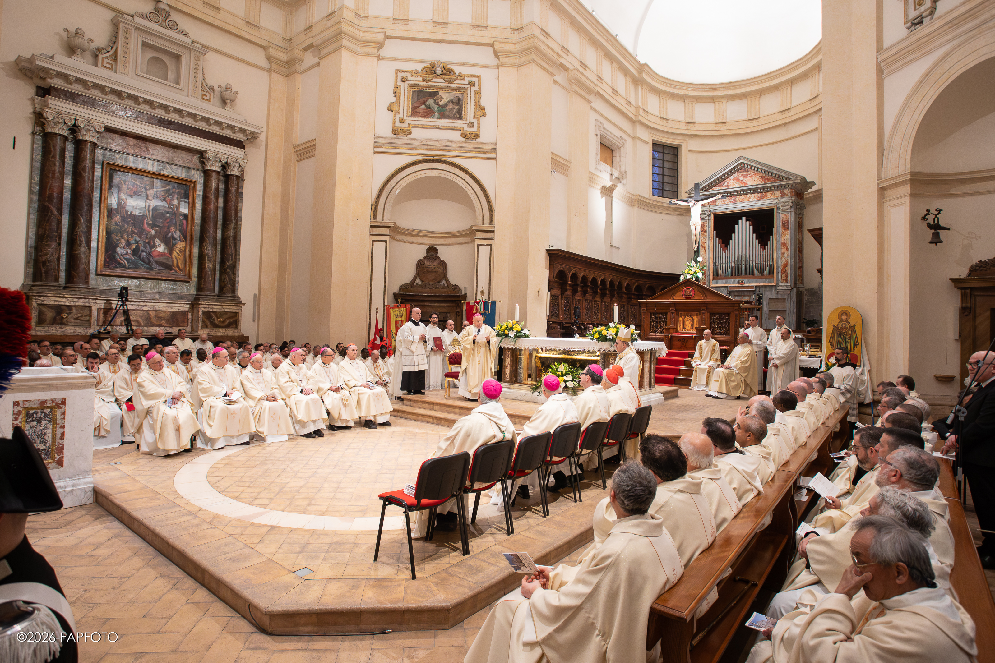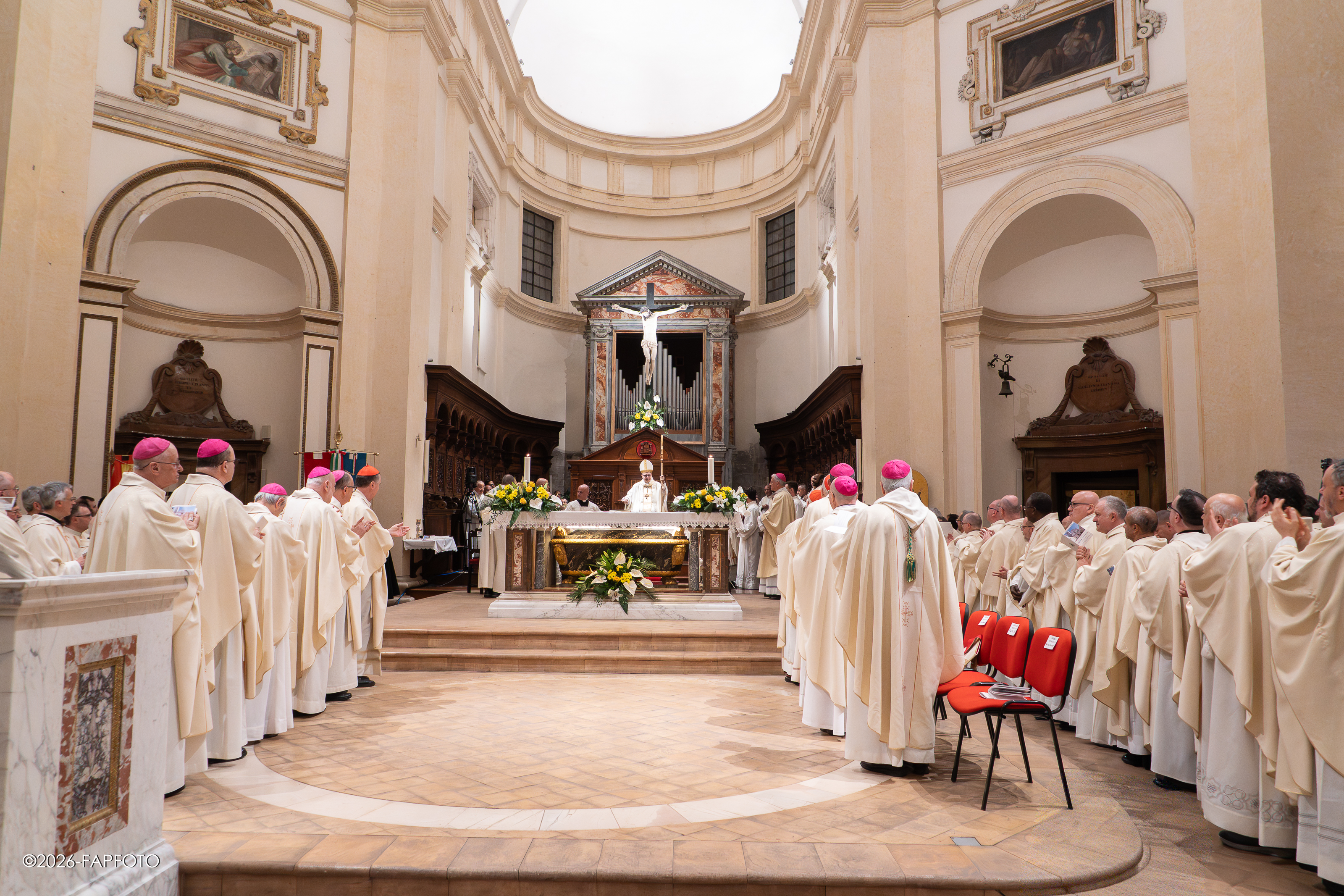 Il vescovo ha baciato l’altare maggiore e indossando la mitria e tenendo il pastorale è salito sulla cattedra di San Feliciano. A seguire alcuni fedeli religiosi e presbiteri lo hanno raggiunto per rendergli omaggio e obbedienza a nome della diocesi.