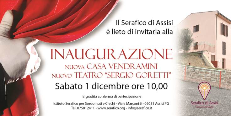 l’Istituto Serafico cresce e, in occasione della Giornata Internazionale delle Persone con Disabilità, inaugura la nuova Residenza Vendramini ed il Teatro “Sergio Goretti”, due strutture fondamentali per garantire concretamente ai propri ragazzi maggiori servizi di cura, nuove opportunità di inclusione e una reale ed effettiva partecipazione alla vita. Allo stesso tempo restituisce al territorio umbro delle reali opportunità di sviluppo, incrementando il proprio organico conl’assunzione di altre 17 figure professionali.