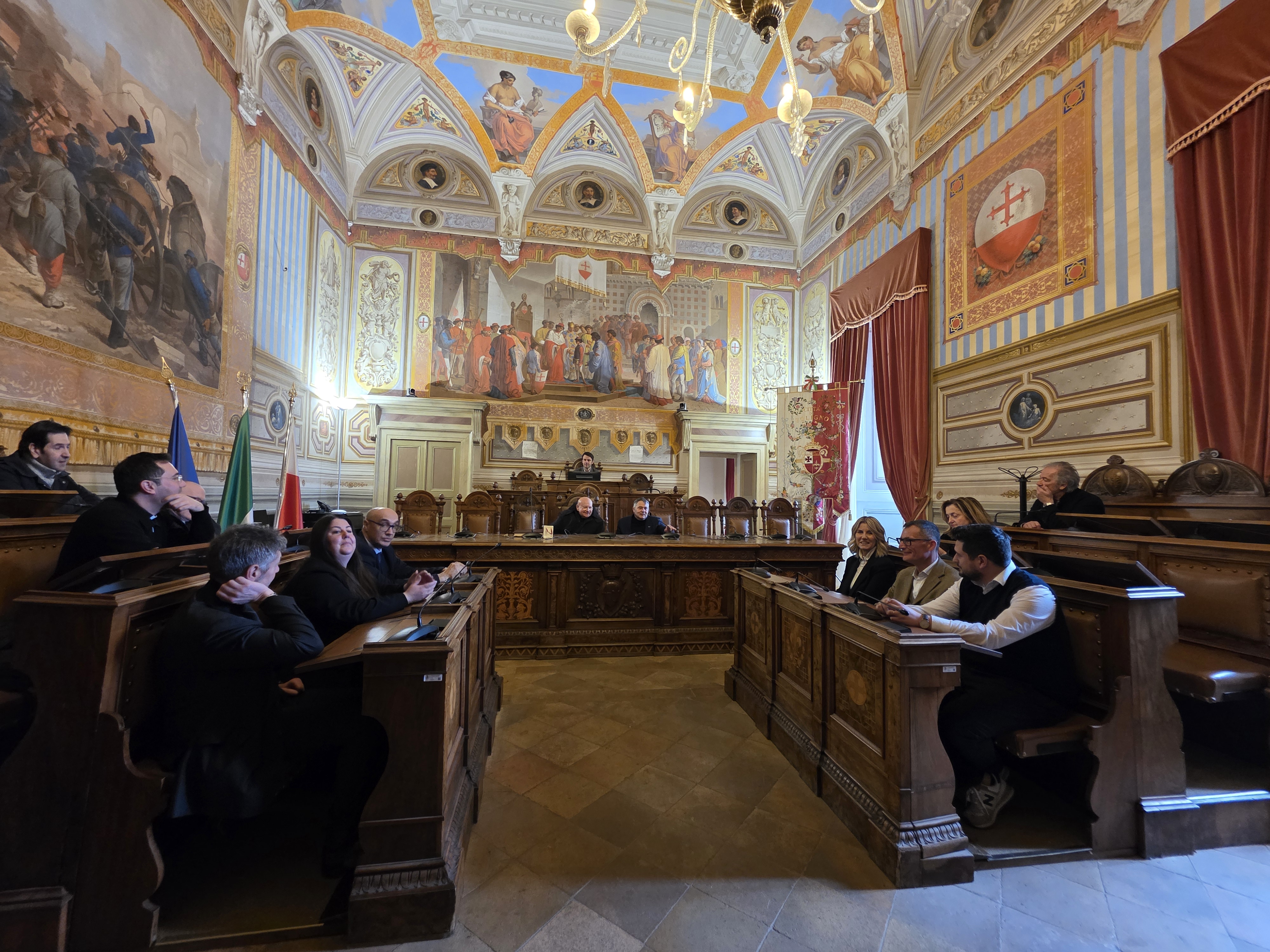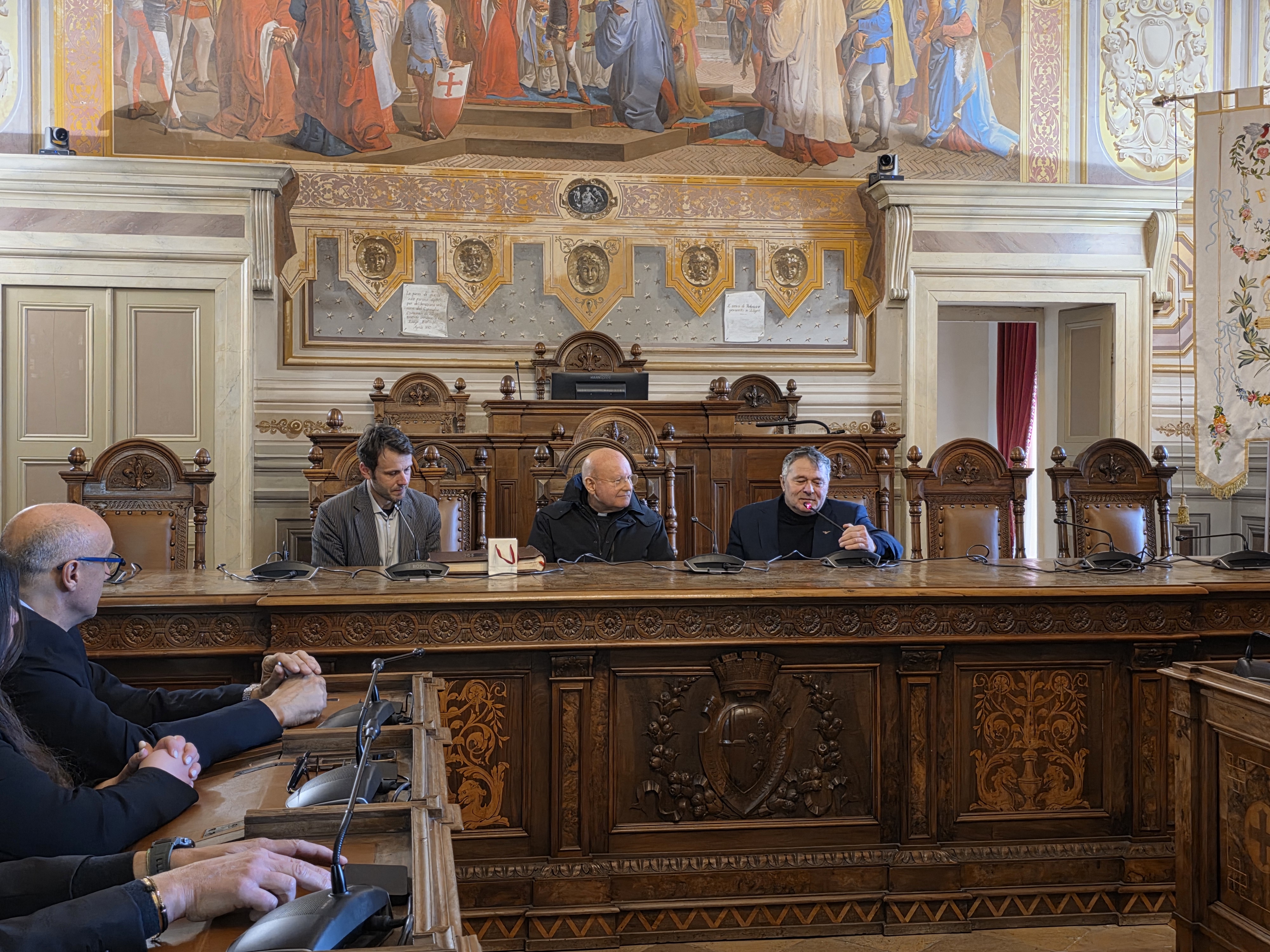FOLIGNO – Venerdì 20 marzo in mattinata nel palazzo comunale di Foligno monsignor Domenico Sorrentino ha ricevuto i saluti e i ringraziamenti del sindaco Stefano Zuccarini, della giunta e del presidente del consiglio comunale, per “la vicinanza, l'attenzione e la cura dimostrata a tutto il territorio ed alla Sua comunità in ogni momento del suo mandato episcopale”.
