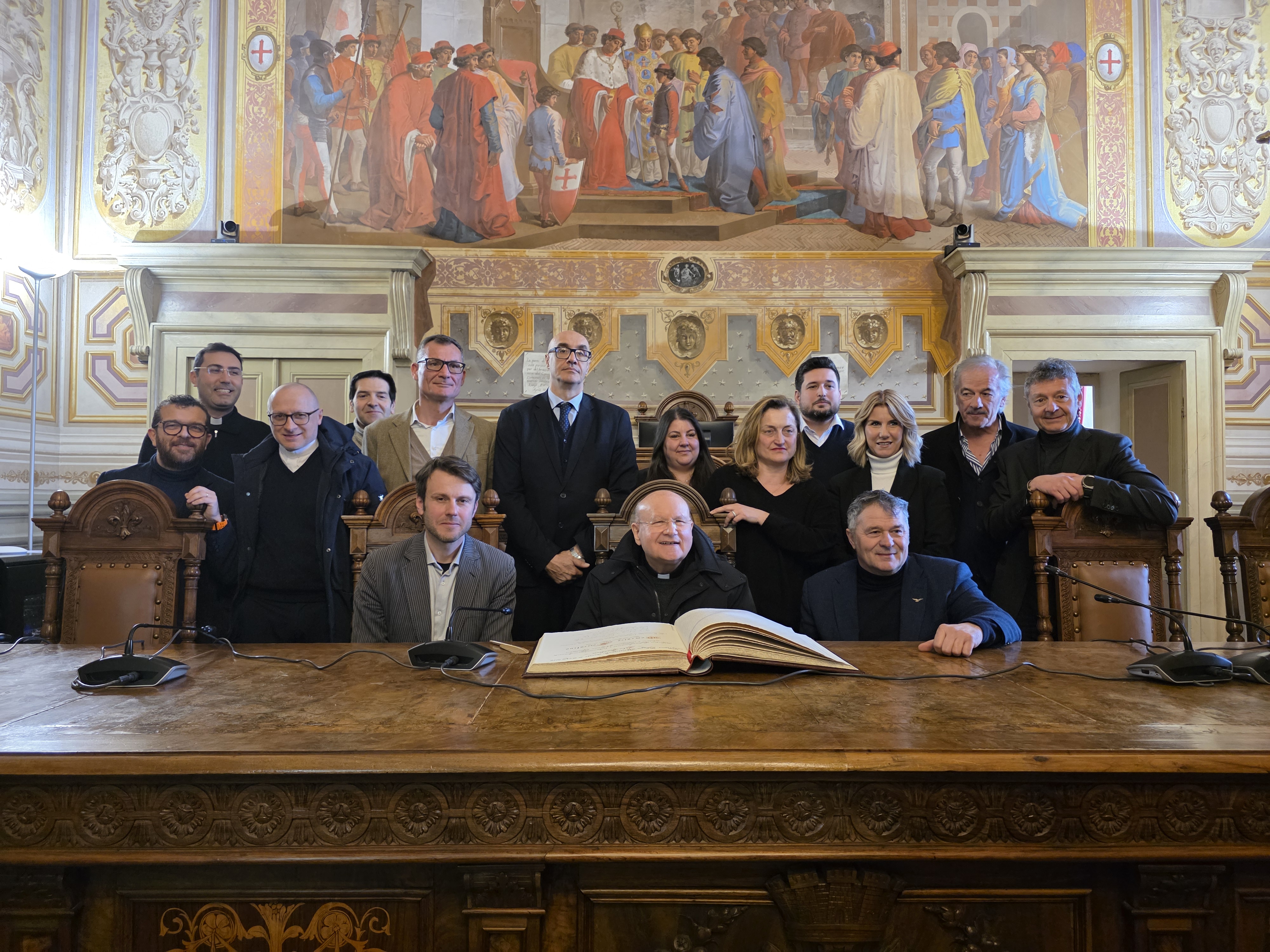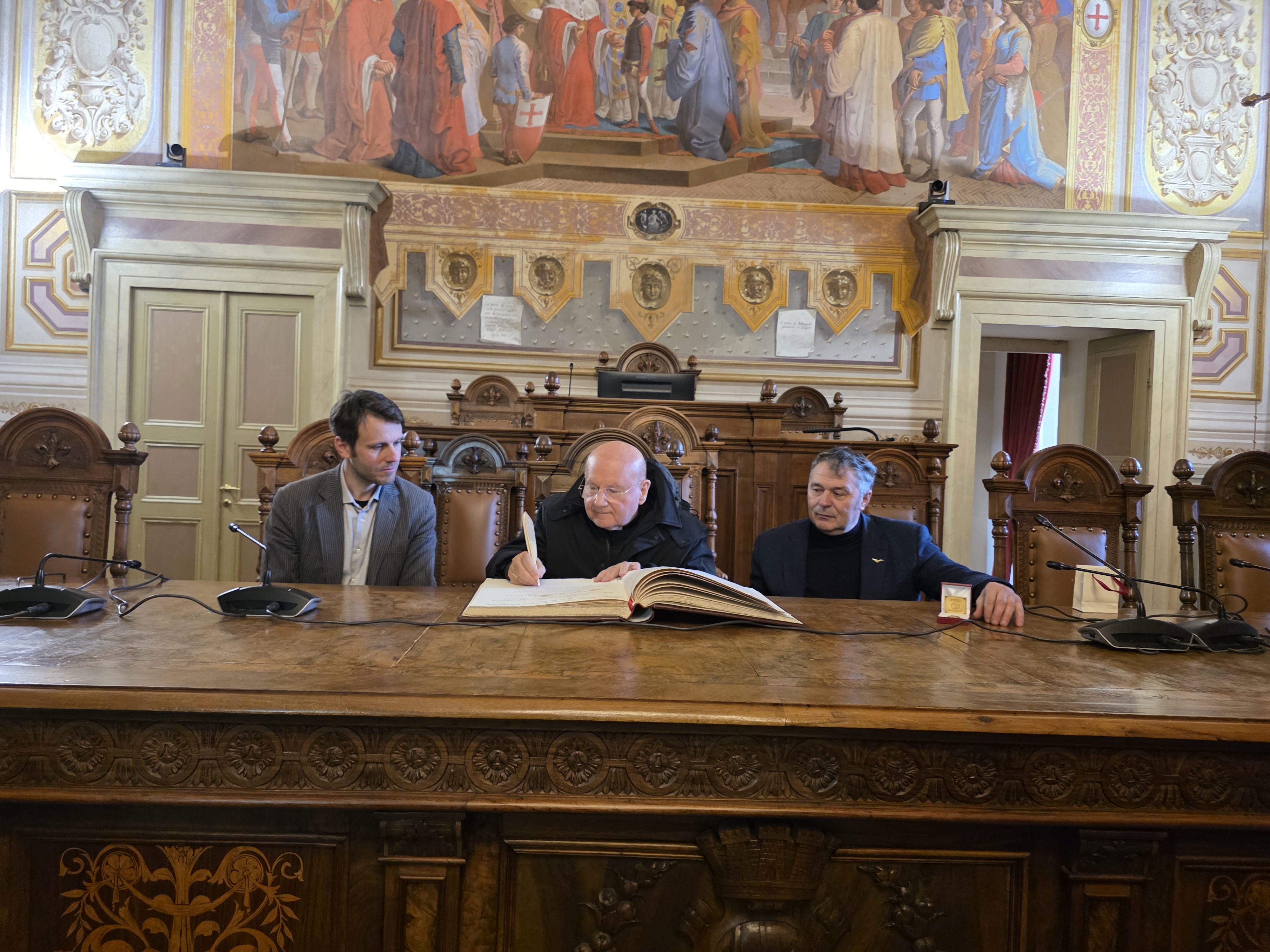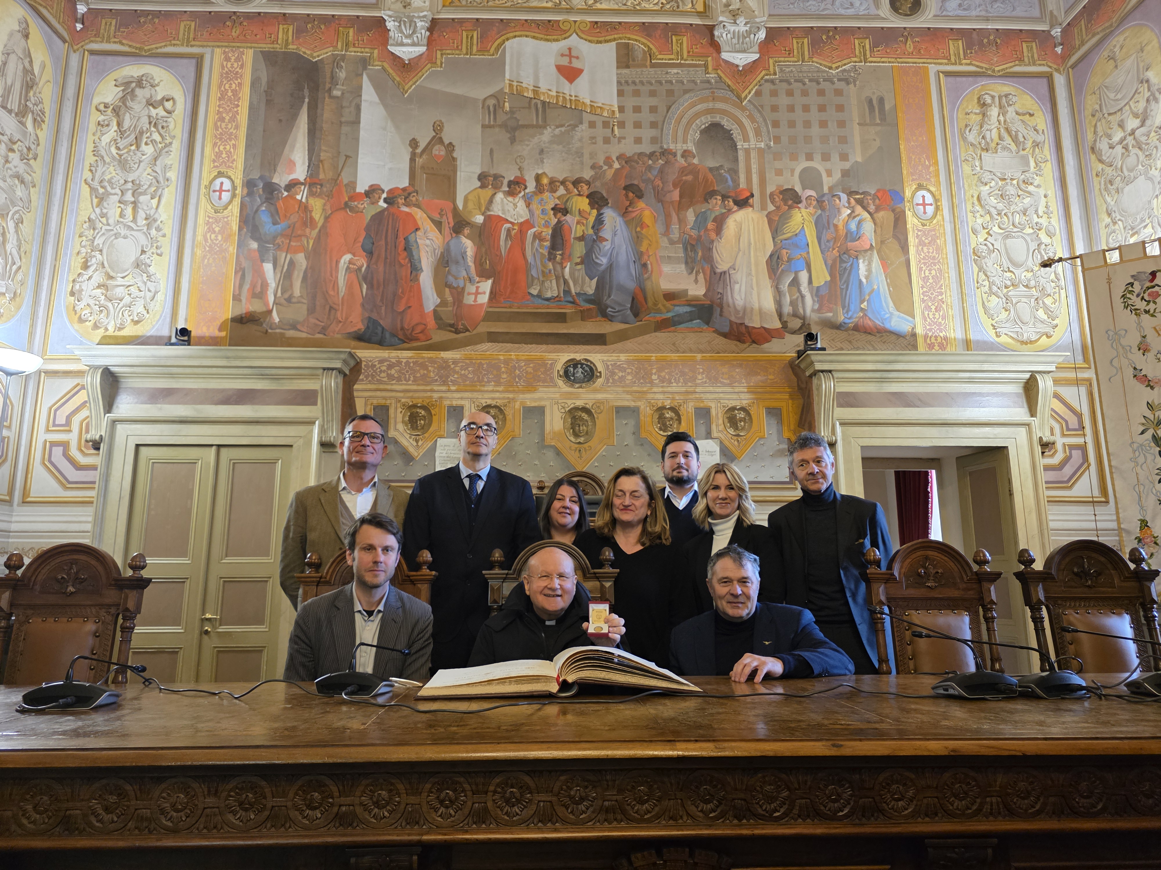 A monsignor Sorrentino è stata dedicata una pagina del libro d’onore di Foligno, e donato un baiocco d’oro quale simbolo massimo della Città.
