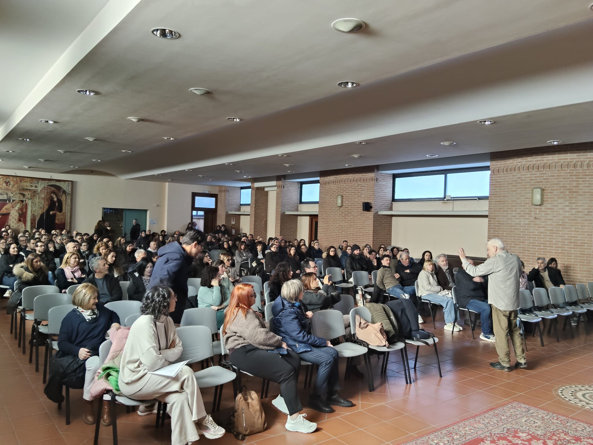 Contemporaneamente nel vicino Centro pastorale di Santa Maria degli Angeli più di 250 genitori hanno vissuto un pomeriggio “speciale”, così molti l’hanno definito, incontrando il dott. Ezio Aceti, psicologo dell’età infantile e adolescenziale che, in maniera accattivante ha svolto il tema “La bellezza dell’educare… all’amicizia con Gesù”. Un tema che, tra l’altro, ha guidato i genitori ad accogliere il grande dono del sacramento della Confermazione. Il dott. Aceti ha sottolineato in maniera chiara l’importanza della relazione tra genitori e figli e come da essa può scaturire la crescita emozionale, affettiva, umana, sociale e spirituale. I genitori hanno apprezzato questo spazio di ascolto e, in tanti, auspicano che, un momento così, possa essere replicato. Vari i messaggi arrivati a conclusione dell’incontro che hanno espresso profonda gratitudine per le due ore bellissime, coinvolgenti, arricchite da un confronto schietto e motivante.