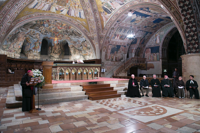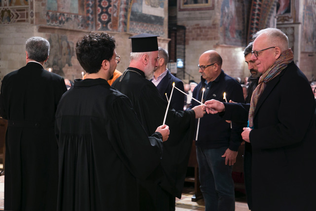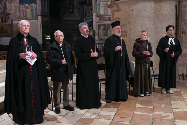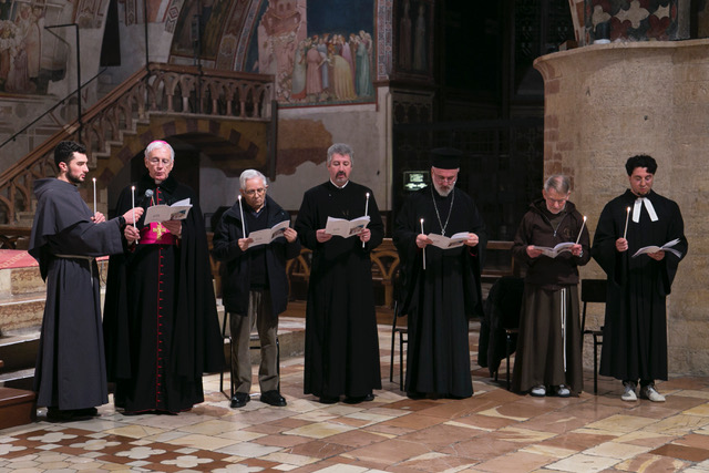 ASSISI – In un clima di cordiale fraternità, domenica 18 gennaio si è celebrata nella Chiesa Inferiore della Basilica di San Francesco la veglia ecumenica regionale che ha aperto la Settimana di preghiera per l’unità dei cristiani 2026. Monsignor Domenico Sorrentino, amministratore apostolico delle diocesi di Assisi Nocera Umbra Gualdo Tadino e si Foligno, e padre Giulio Cesareo a nome del custode del Sacro Convento hanno accolto i partecipanti inserendo il momento di preghiera nella spiritualità di San Francesco.