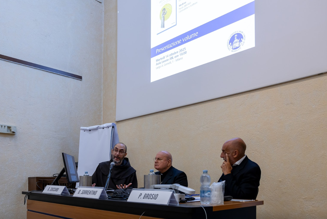 MILANO - La fragilità dell’essere umano e la sua sofferenza sono il vero cuore del Cantico delle creature di san Francesco. La fama di questo testo da sempre si deve alla lode al creato, al sole, alla luna e alle stelle, ma una nuova interpretazione, una sorta di “canone inverso”, analizza gli ultimi versi del Cantico e rovescia la prospettiva mettendo al centro il perdono e la morte. A proporre questa visione è il libro Il cuore nascosto del Cantico. Da sora Morte a frate Sole (Mondadori, 2025), dell’arcivescovo di Assisi-Nocera Umbra-Gualdo Tadino e di Foligno Domenico Sorrentino che martedì 14 ottobre l’ha presentato nel campus milanese dell’Università Cattolica alla presenza del giornalista e scrittore Paolo Brosio e del docente di Teologia dell’Ateneo padre Gianluca Zuccaro.