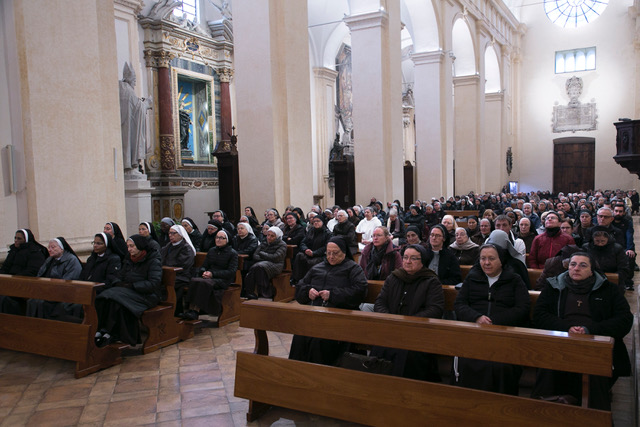 “La consacrazione speciale – ha aggiunto monsignor Sorrentino - dona l’intensità dello sguardo che si concentra, su quel volto amabile, nella nuova libertà dell’obbedienza, della povertà, della castità. La chiesa ha bisogno della vita consacrata. Ne ha bisogno per riprendere continuamente lo slancio delle origini, quando in mezzo alle folle attratte da Gesù, alcuni furono chiamati a una vicinanza speciale, che li rendeva una sola cosa con lui, chiamati ad amplificare la sua voce, ripetendo i suoi gesti, rendendogli possibile un annuncio che mostrava proprio nelle loro persone quanto sia bello e gioioso vivere per lui. In coloro che gli furono vicini nella prima ora si univano, e in qualche modo si fondevano, il ministero e la speciale consacrazione. Il diritto della chiesa li ha distinti”.