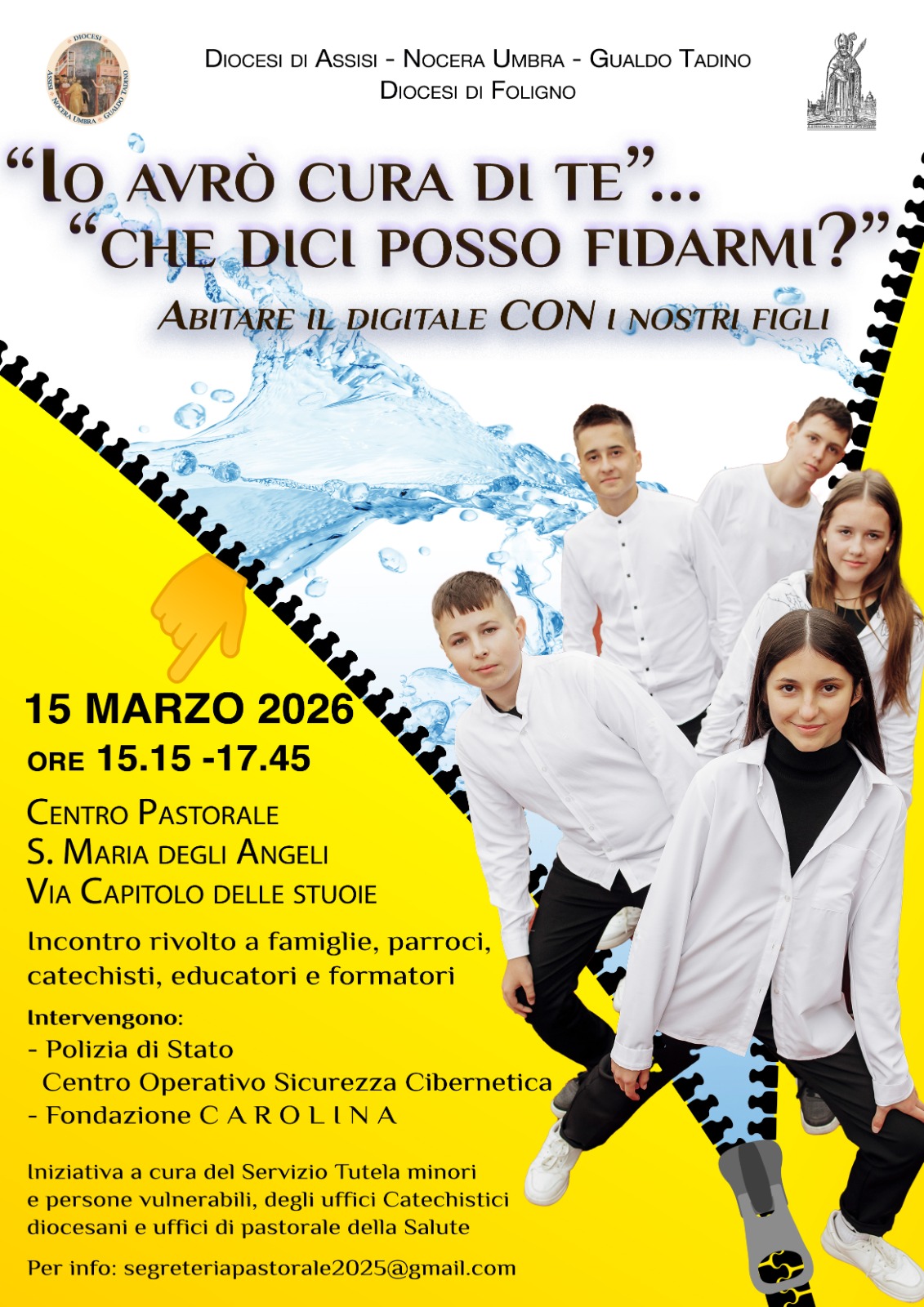 L’iniziativa è organizzata dagli uffici catechistici delle diocesi di Assisi – Nocera Umbra – Gualdo Tadino e di Foligno e del Servizio tutela minori e persone vulnerabili e dall’ufficio pastorale della Salute.