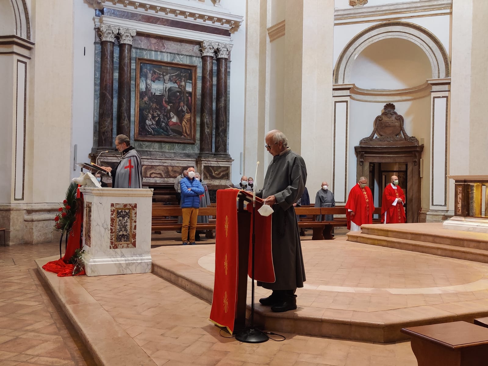 ASSISI – Nella cattedrale di San Rufino venerdì Santo mattina, 2 aprile, giorno della Passione e morte del Signore, del digiuno e dell'astinenza dove si fa più forte il grande silenzio della Chiesa iniziato il giovedì santo, in mattinata è stata celebrata dalla comunità parrocchiale con il parroco don Cesare Provenzi, il viceparroco don Alessandro Picchiarelli, don Dario Resenterra e il popolo di Dio, l'Ufficio delle letture e le Lodi mattutine.