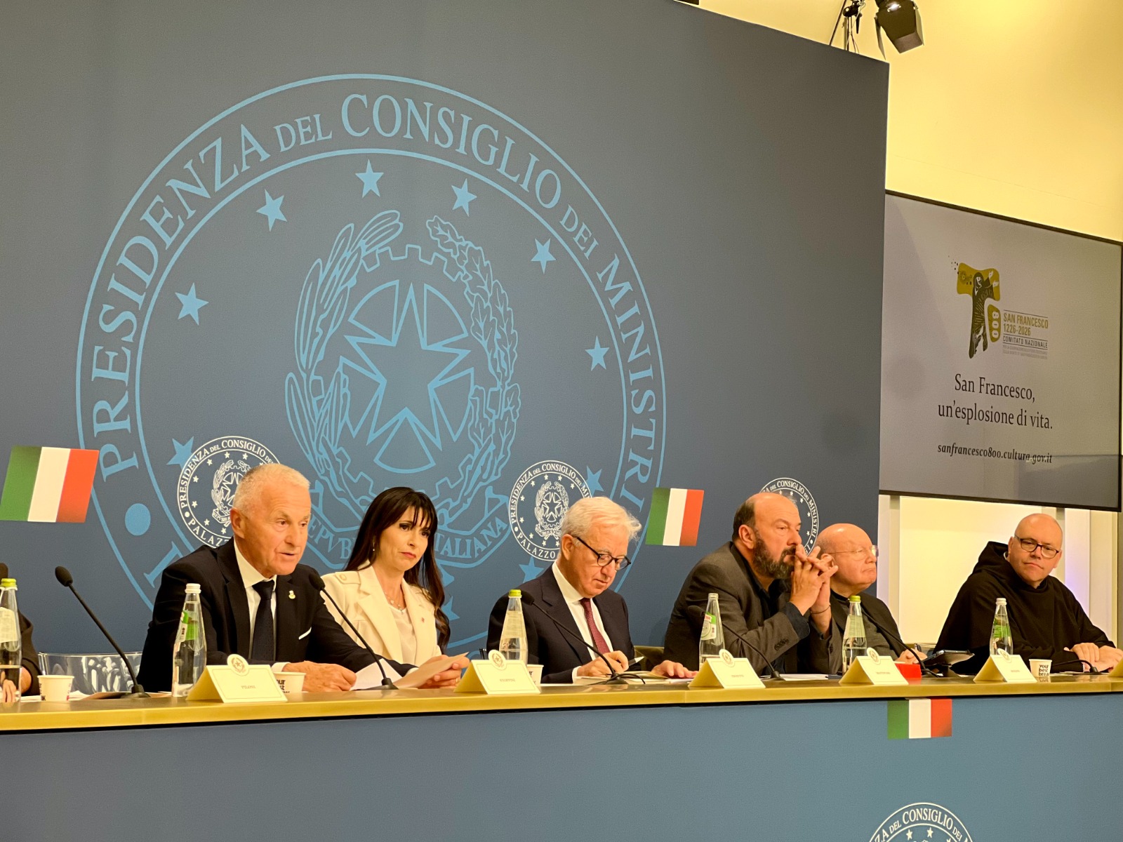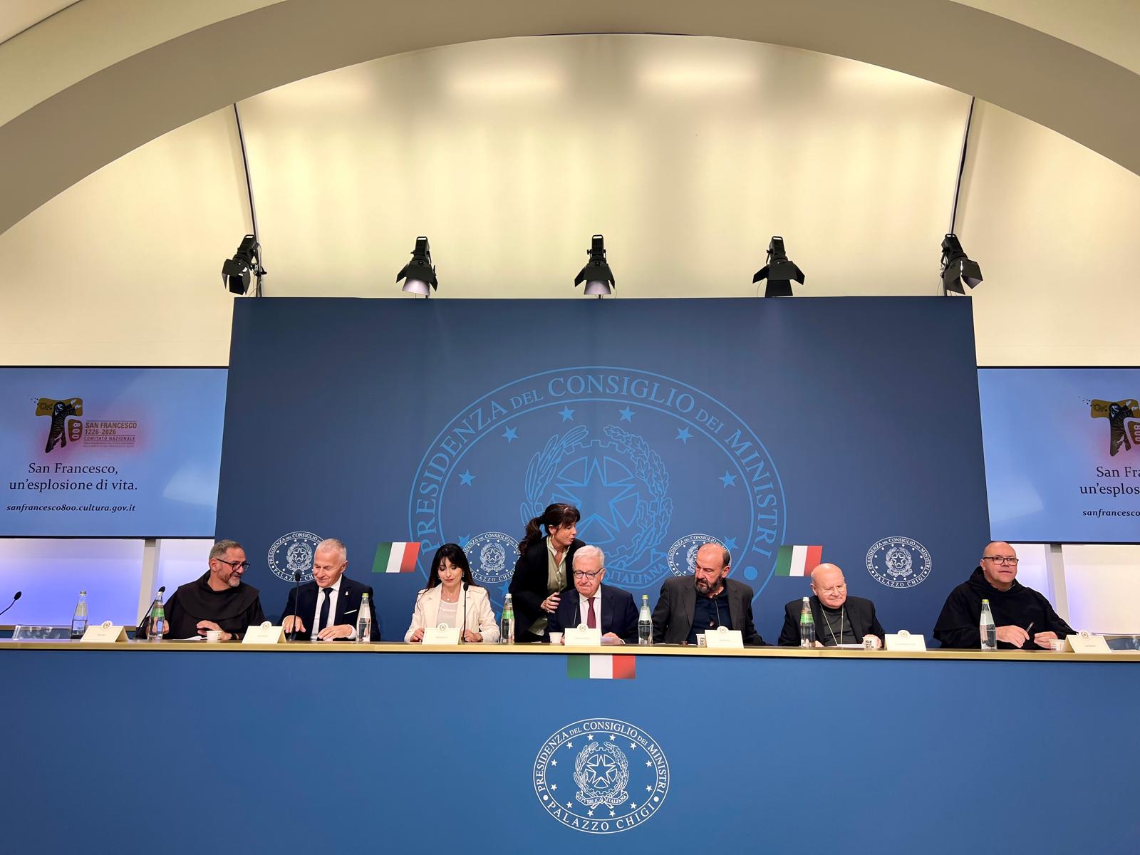 Nel corso dell’evento è stata, tra l’altro, annunciata la presenza ad Assisi, nel 2026, del Presidente della Repubblica, Sergio Mattarella, e di Papa Leone XIV. Il Comitato nazionale si è dedicato, in particolare, a progetti duraturi nel tempo e ha iniziato a raccogliere, attraverso il patrocinio, la mobilizzazione di tantissimi soggetti in Italia e nel mondo. Le iniziative si articolano, in particolare, in sei macro progetti: Assicurare la Memoria: edizioni, catalogazioni delle fonti francescane e digitalizzazione dei Fondi antichi presso il Sacro Convento di Assisi, per garantire la fruizione scientifica e la tutela nel tempo; Francesco nel Giubileo: iniziative a Roma e Assisi in occasione del Giubileo, con eventi simbolici e culturali che rimandano alla figura del Santo; Francesco nel Mondo: azioni internazionali con Auditorium Parco della Musica e rete degli Istituti Italiani di Cultura, Piano Mattei e altri, attività negli istituti penitenziari e presenza nei principali saloni del libro; Sculture - Nuovi Segni: collocazione di opere permanenti di grandi artisti contemporanei in città italiane ed estere, per lasciare tracce durevoli della figura di Francesco; Francesco e i Giovani: concorsi e percorsi partecipativi ispirati al Cantico delle Creature, con un Capitolo delle Stuoie dei Giovani ad Assisi; Cammino di Francesco: armonizzazione dei percorsi ad opera di un soggetto unitario di governance. Il Comitato nazionale collabora anche con il Piano Mattei per sviluppare iniziative di carattere internazionale, in particolare rivolte all’Africa e al Mediterraneo. Sono previsti programmi congiunti di sostegno a Gerusalemme, in Kenya e in Egitto.