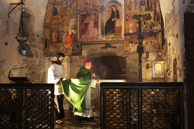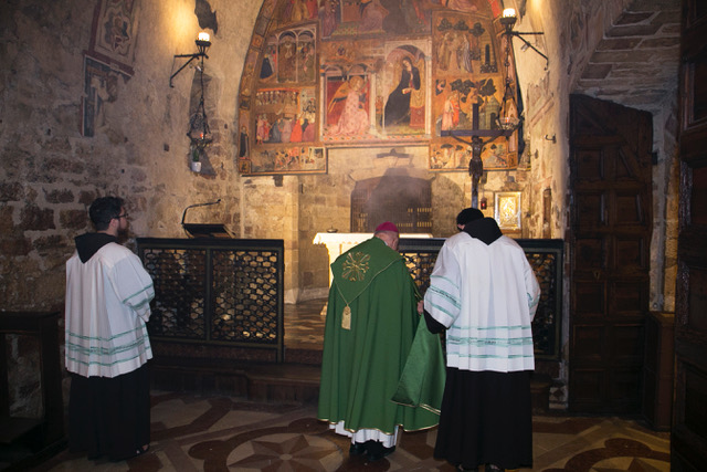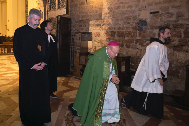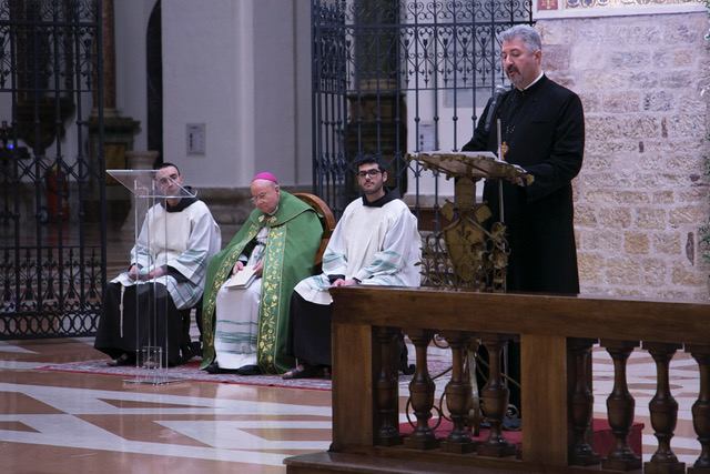 Dopo i saluti del custode, padre Massimo Travascio è seguita la celebrazione dei vespri presieduti da monsignor Domenico Sorrentino. Il momento centrale della celebrazione è stato affidato alla riflessione di padre Petru Heisu, decano della diocesi Ortodossa Romena d’Italia per le regioni Umbria e Marche.