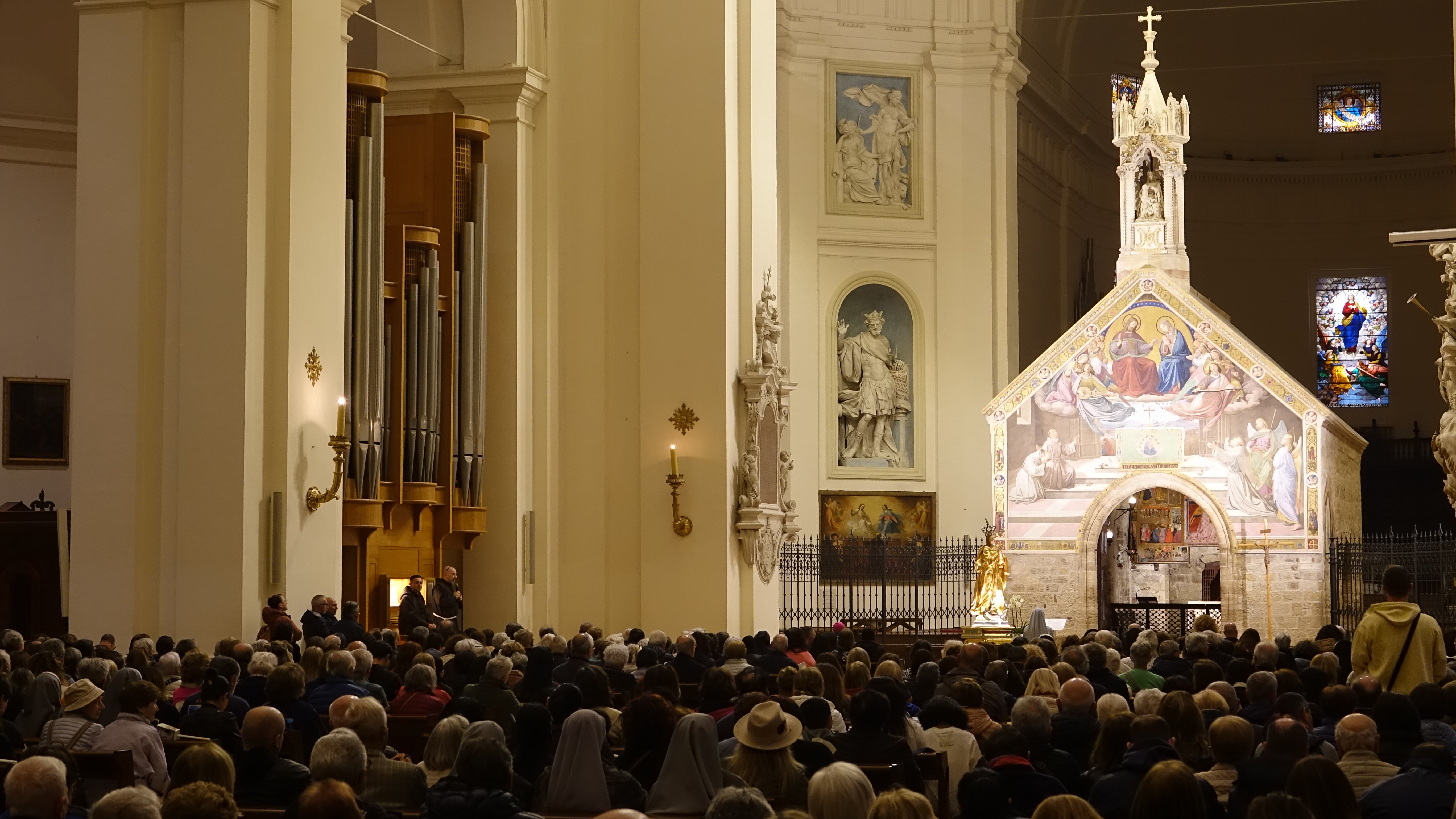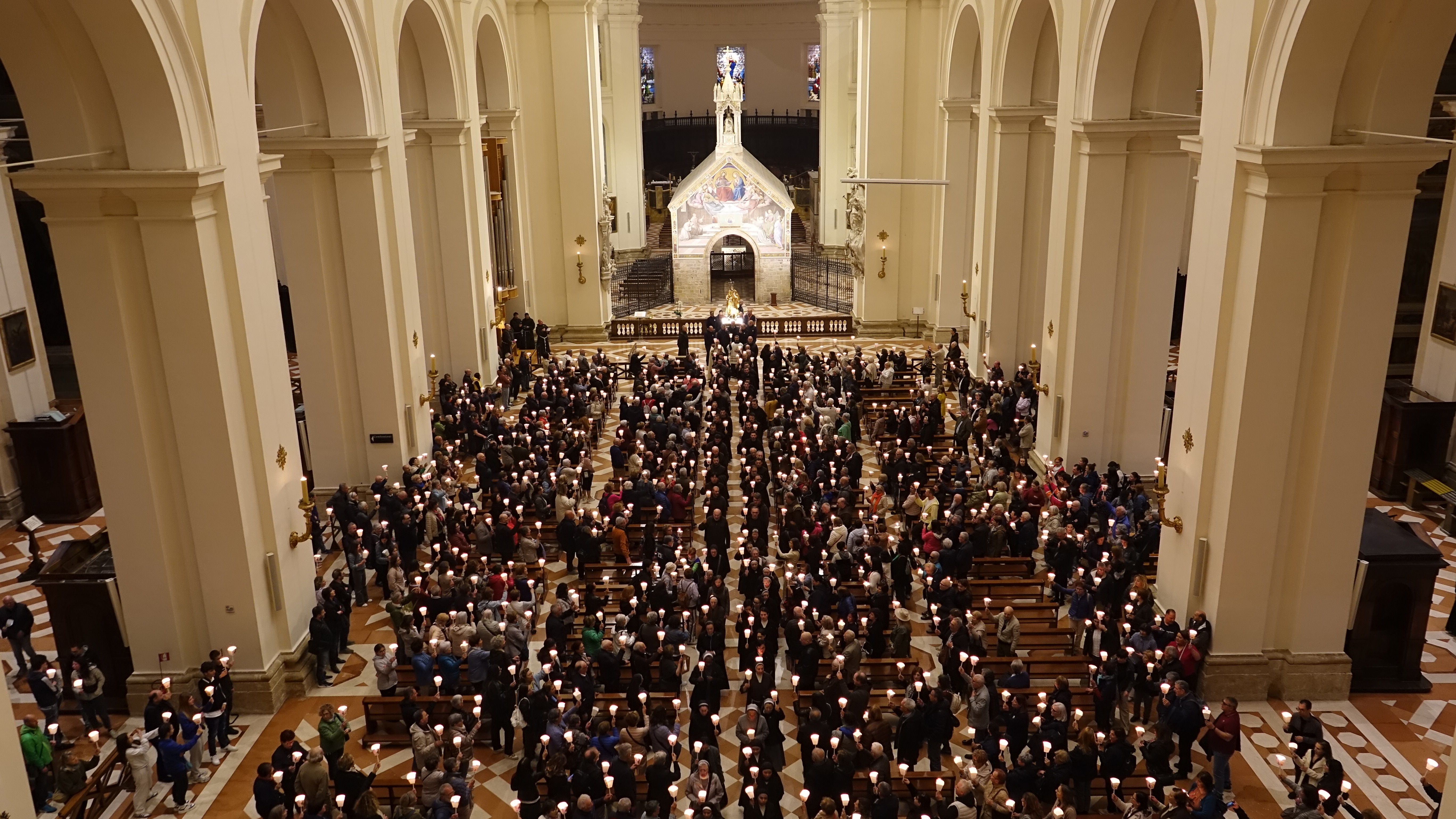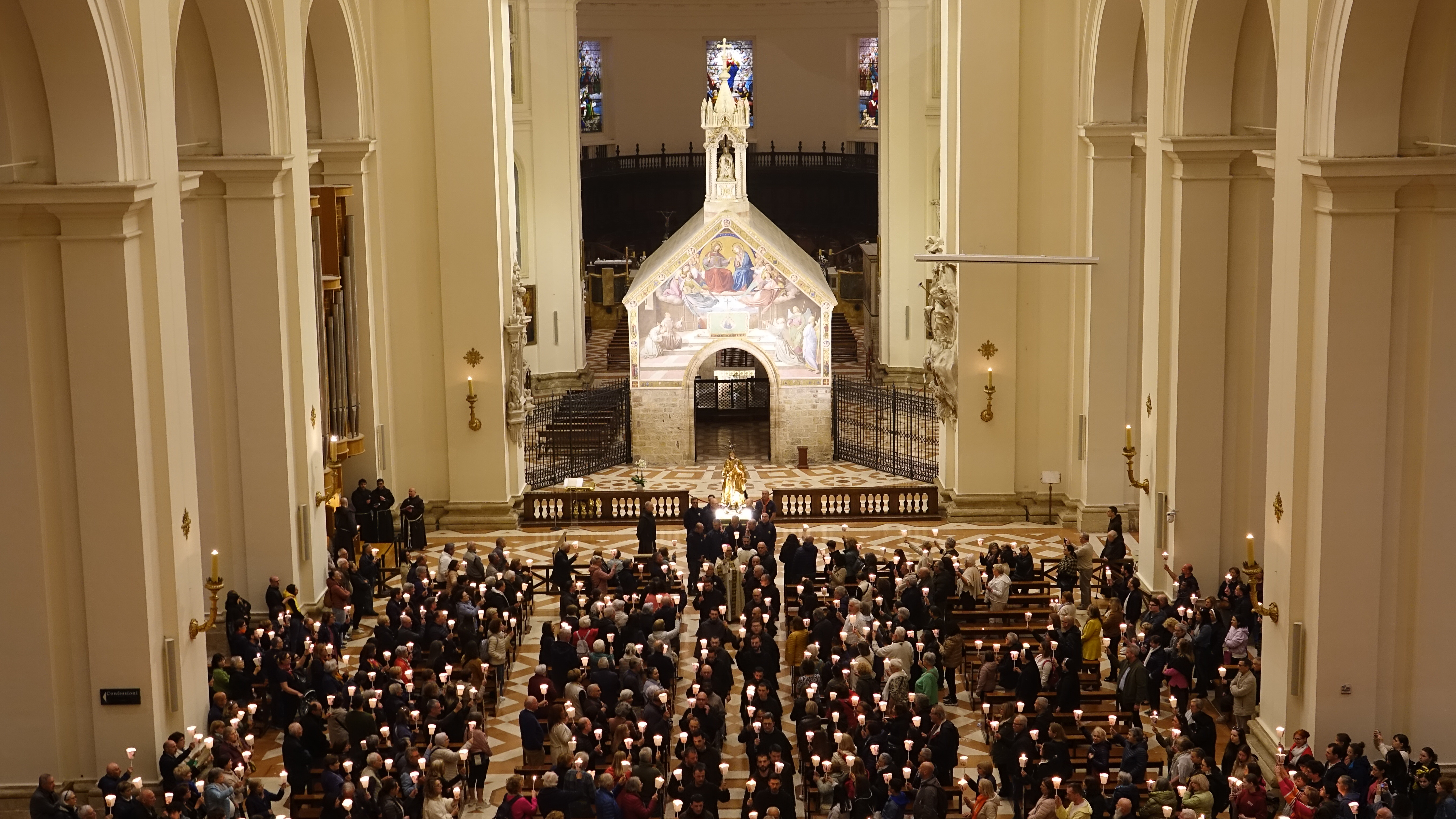 Il vescovo ha poi fatto accenno al Canto VIII dell’Inferno di Dante Alighieri ed ha spiegato la parola che Dante mette in bocca a Virgilio. “La citai – ha detto il vescovo - già nel giorno dell’ingresso. Attraversando la palude stigia, Virgilio commenta: quanti si tengono or lassù, quanti nel mondo si ritengono gran regi, che qui staranno come porci in brago, di sè lasciando orribili dispregi!. La storia è piena di uomini grandi che hanno avuto un potere enorme, che hanno portato nei cimiteri milioni di innocenti e la storia li ricorda così: come mostri non certo da imitare. Oggi chi sta seminando tanti lutti e tante miserie, chi sta prendendo decisioni che vanno a finire sul collo degli innocenti pensino, come ha detto Papa Leone, che dovranno rendere conto a Dio. E noi dobbiamo pregare per queste persone, pregare sul serio perché si convertano, perché scoprano la misericordia di Dio, il suo amore e mettano l’enorme potere che hanno nelle mani a servizio di un ideale di misericordia, di perdono. Mettano al centro delle loro azioni i poveri, i piccoli. Si impegnino per convertire le armi in strumenti per dare pane alla gente, come vedeva con visione utopica il profeta Isaia. La Vergine degli Angeli interceda perché tutto questo si realizzi”.