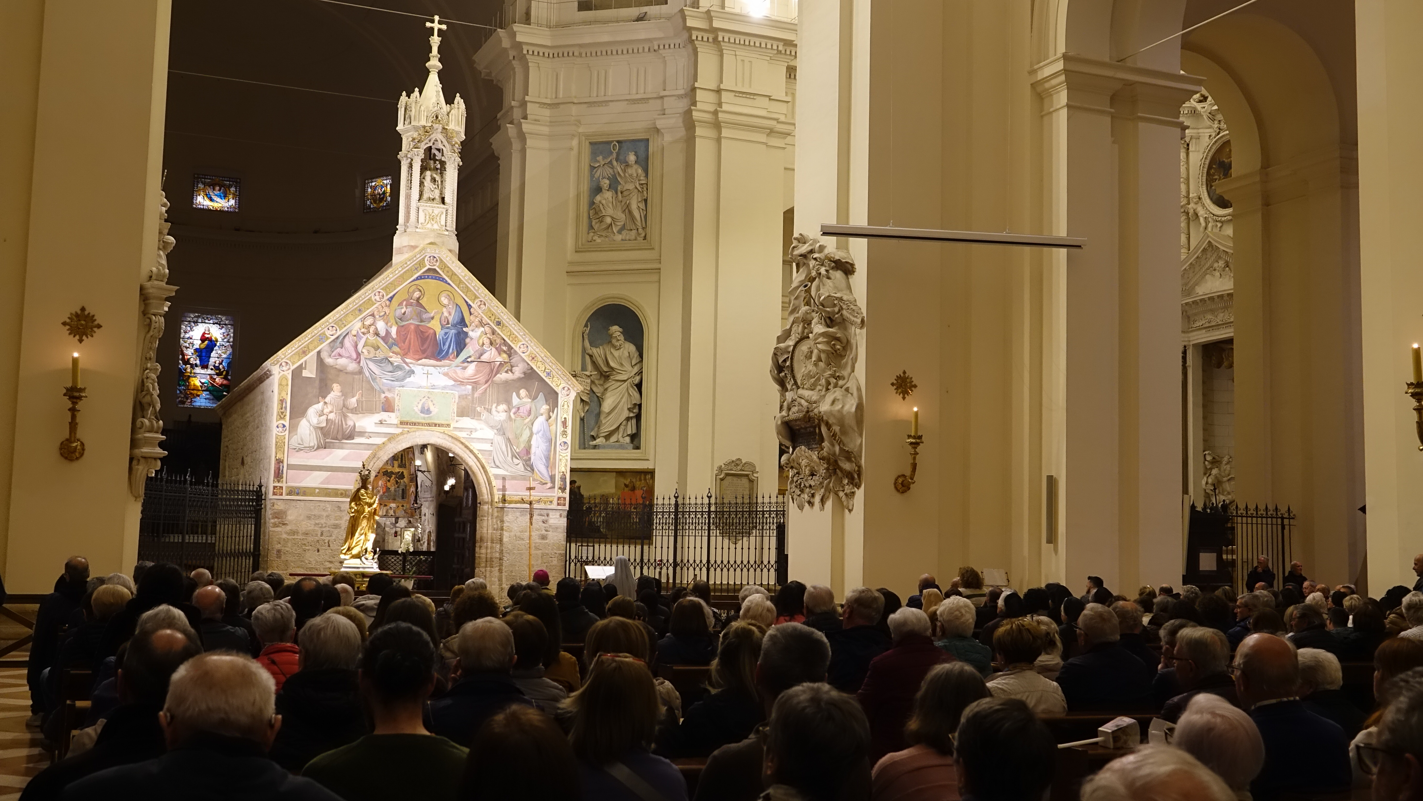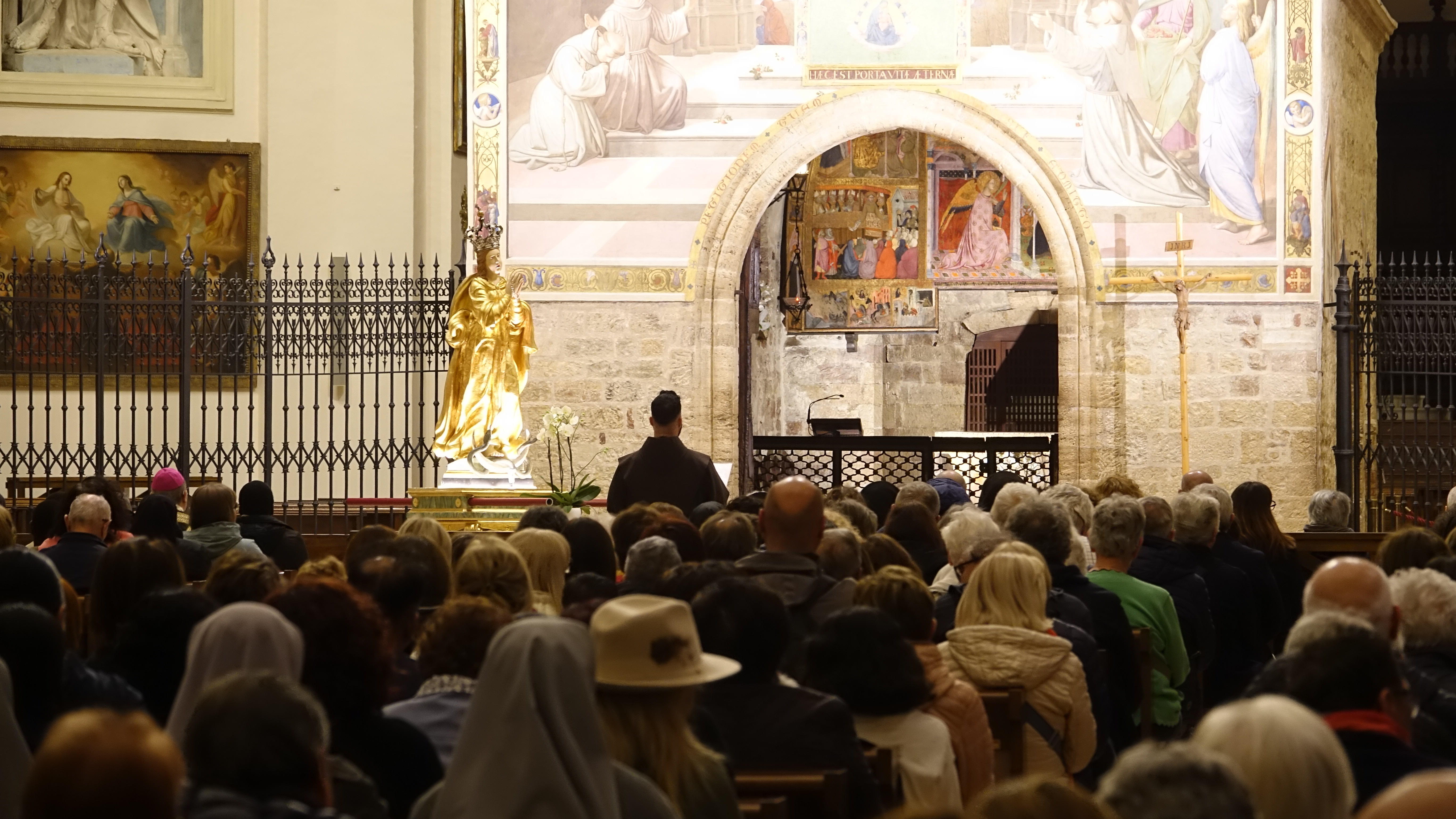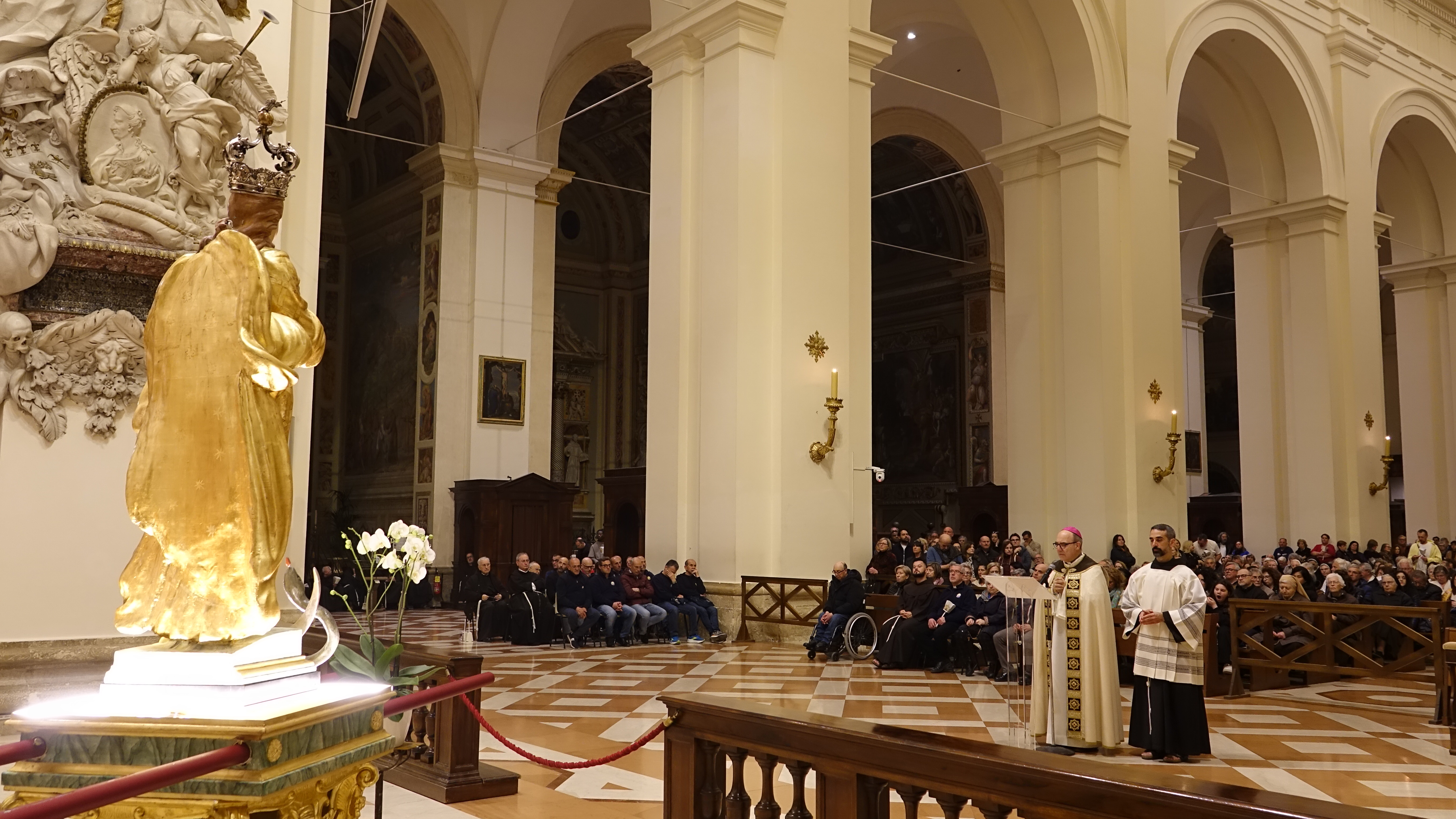 Il vescovo ha poi fatto accenno al Canto VIII dell’Inferno di Dante Alighieri ed ha spiegato la parola che Dante mette in bocca a Virgilio. “La citai – ha detto il vescovo - già nel giorno dell’ingresso. Attraversando la palude stigia, Virgilio commenta: quanti si tengono or lassù, quanti nel mondo si ritengono gran regi, che qui staranno come porci in brago, di sè lasciando orribili dispregi!. La storia è piena di uomini grandi che hanno avuto un potere enorme, che hanno portato nei cimiteri milioni di innocenti e la storia li ricorda così: come mostri non certo da imitare. Oggi chi sta seminando tanti lutti e tante miserie, chi sta prendendo decisioni che vanno a finire sul collo degli innocenti pensino, come ha detto Papa Leone, che dovranno rendere conto a Dio. E noi dobbiamo pregare per queste persone, pregare sul serio perché si convertano, perché scoprano la misericordia di Dio, il suo amore e mettano l’enorme potere che hanno nelle mani a servizio di un ideale di misericordia, di perdono. Mettano al centro delle loro azioni i poveri, i piccoli. Si impegnino per convertire le armi in strumenti per dare pane alla gente, come vedeva con visione utopica il profeta Isaia. La Vergine degli Angeli interceda perché tutto questo si realizzi”.