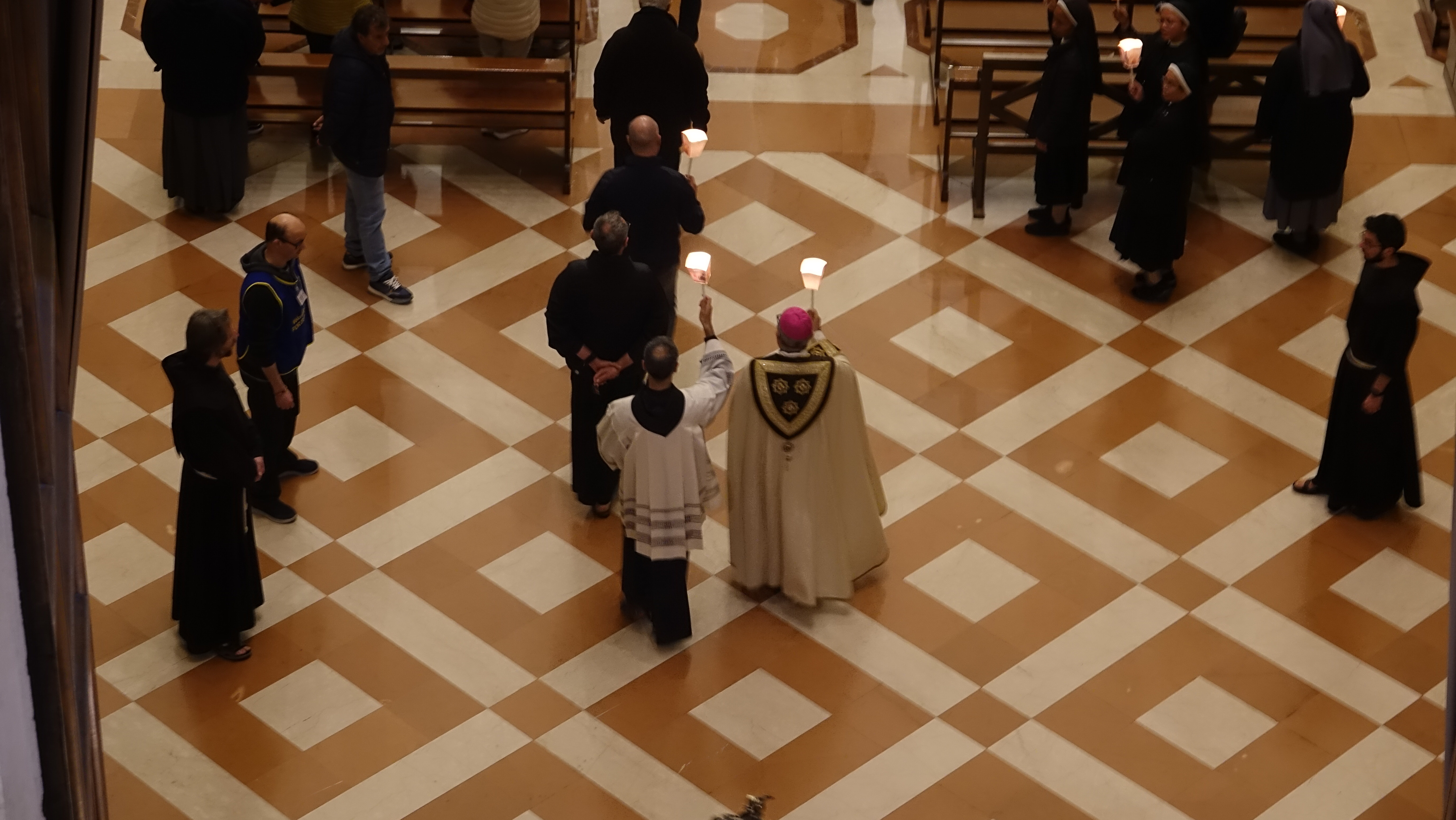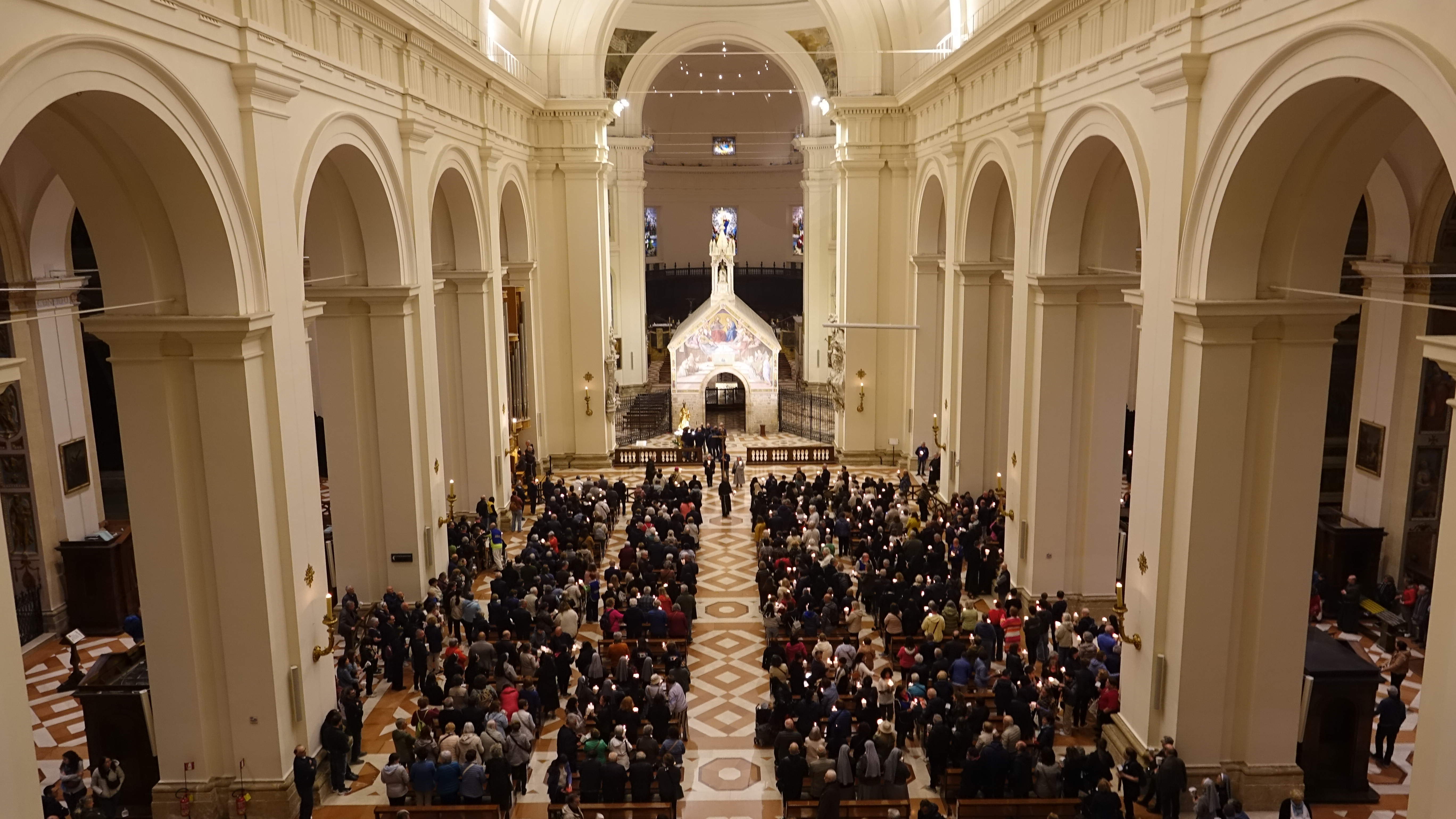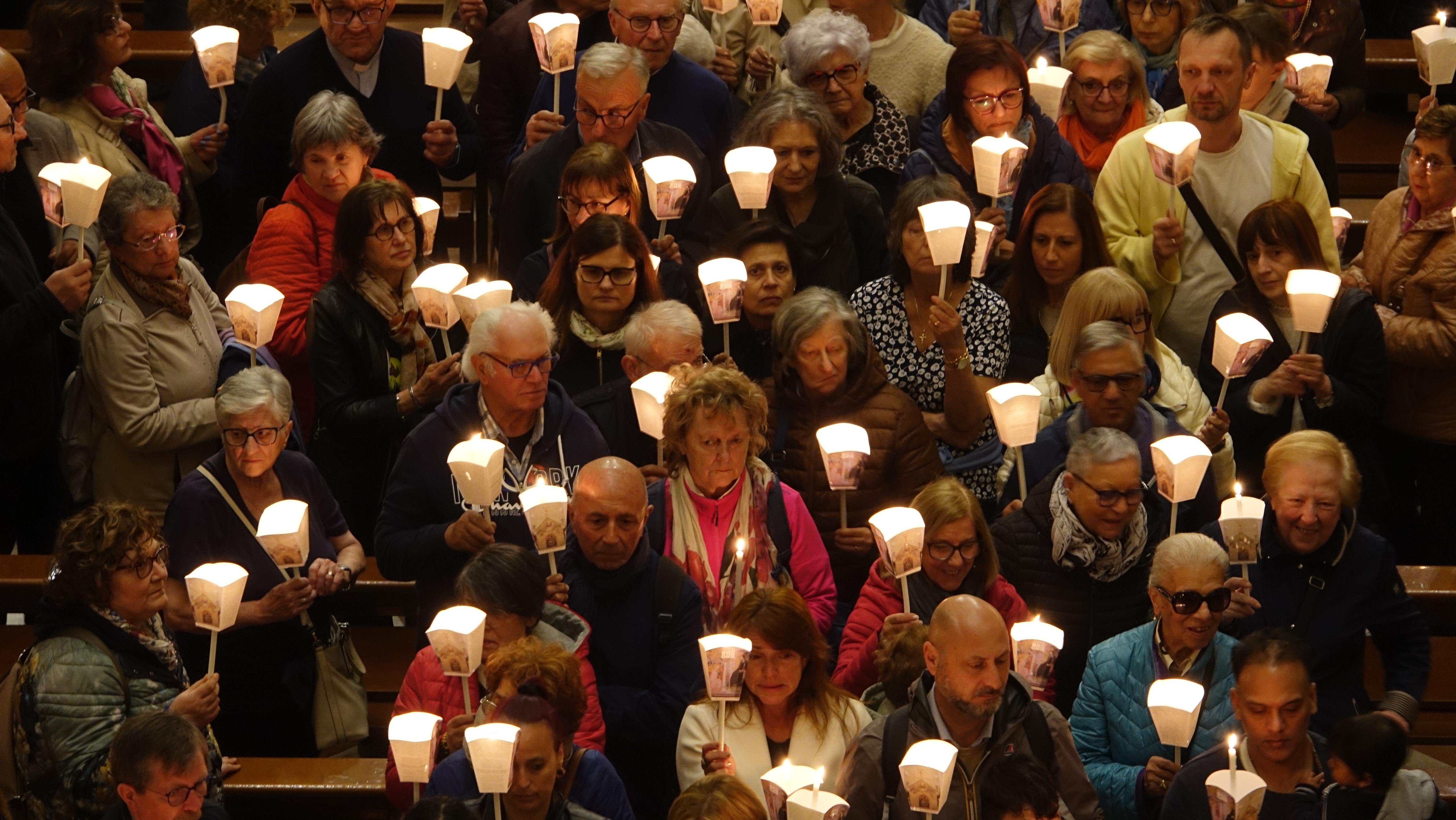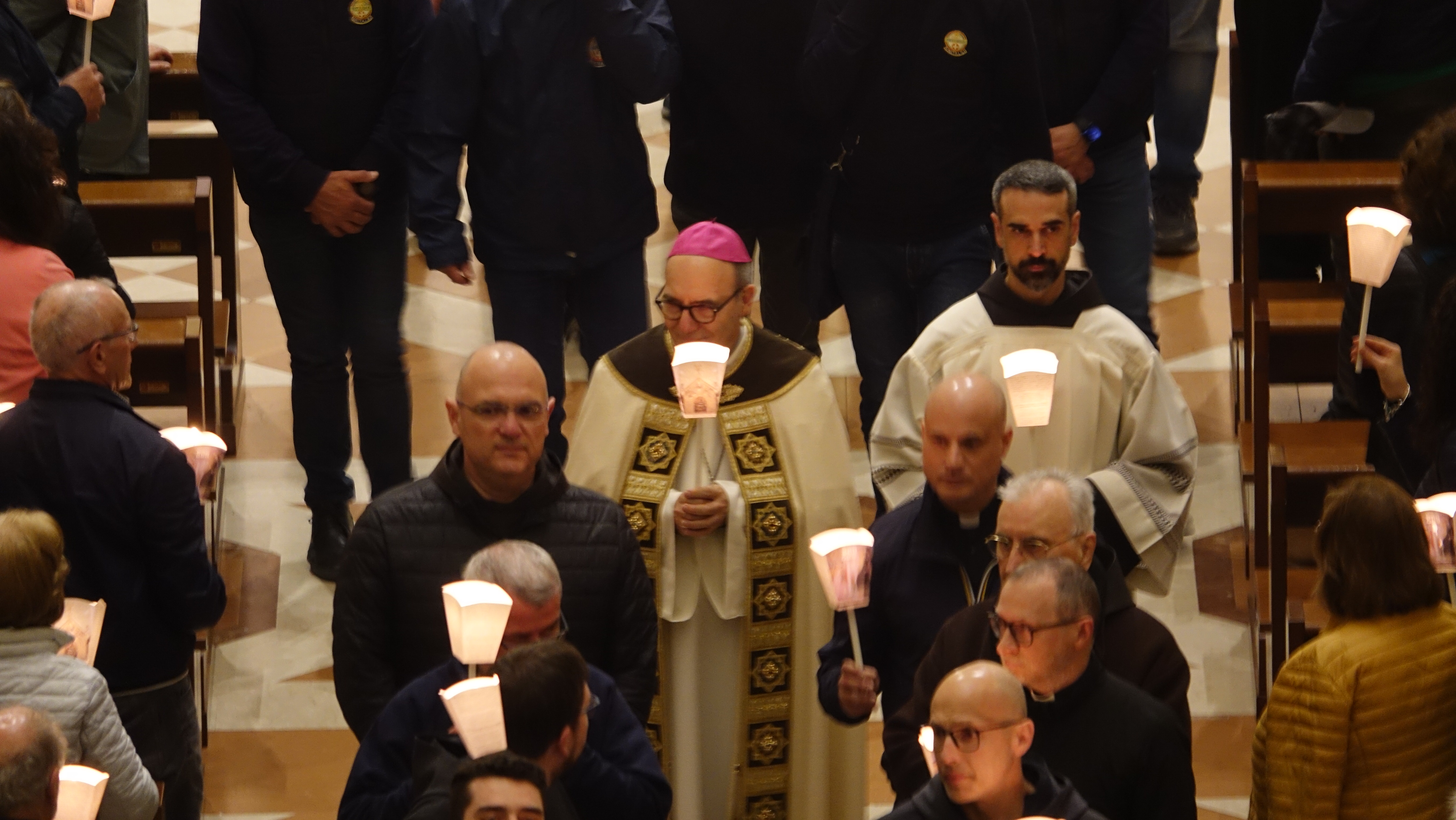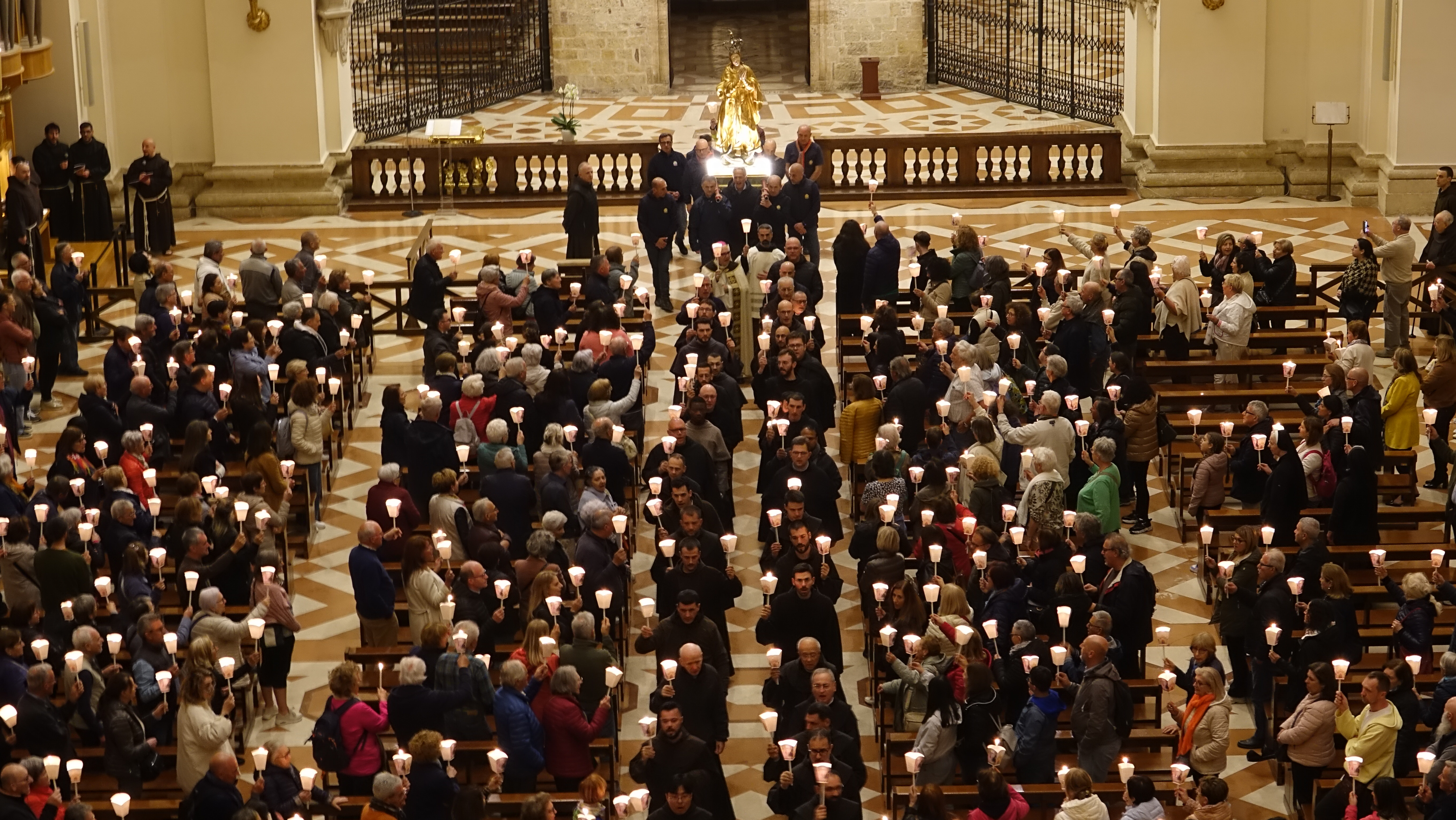 Sono stati tanti i sacerdoti, i religiosi, le religiose e i fedeli che hanno partecipato, in un clima di grande raccoglimento, alla preghiera del santo rosario iniziata nella Basilica e proseguita con la processione aux flambeaux sulla piazza antistante la Basilica, accompagnando la statua della Madonna tra canti e preghiere.