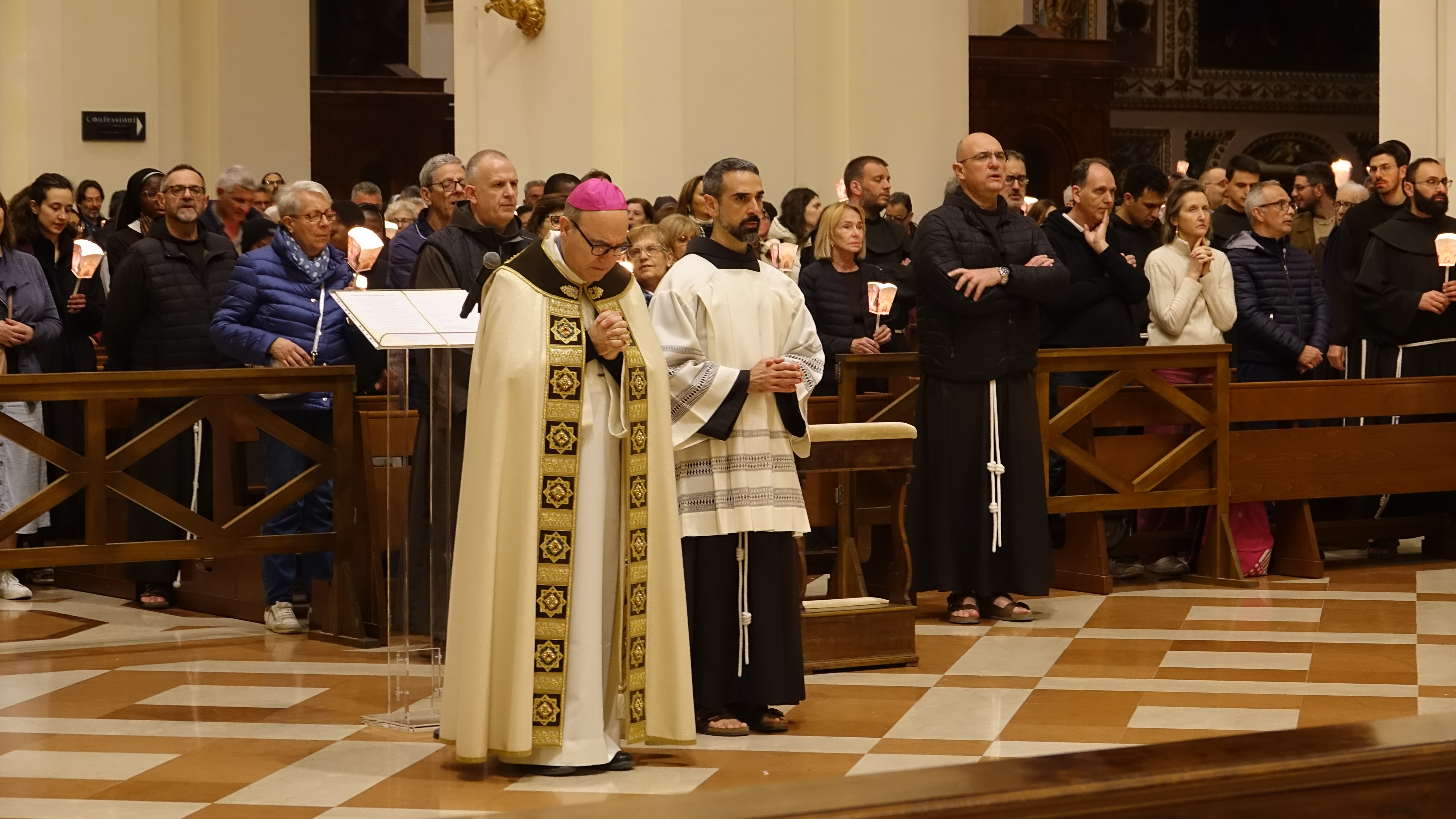 Lo ha detto il vescovo delle diocesi di Assisi – Nocera Umbra – Gualdo Tadino, monsignor Felice Accrocca durante la recita del santo rosario, presieduto nella Basilica di Santa Maria degli Angeli, accogliendo l’invito di Papa Leone XIV di pregare per la pace.