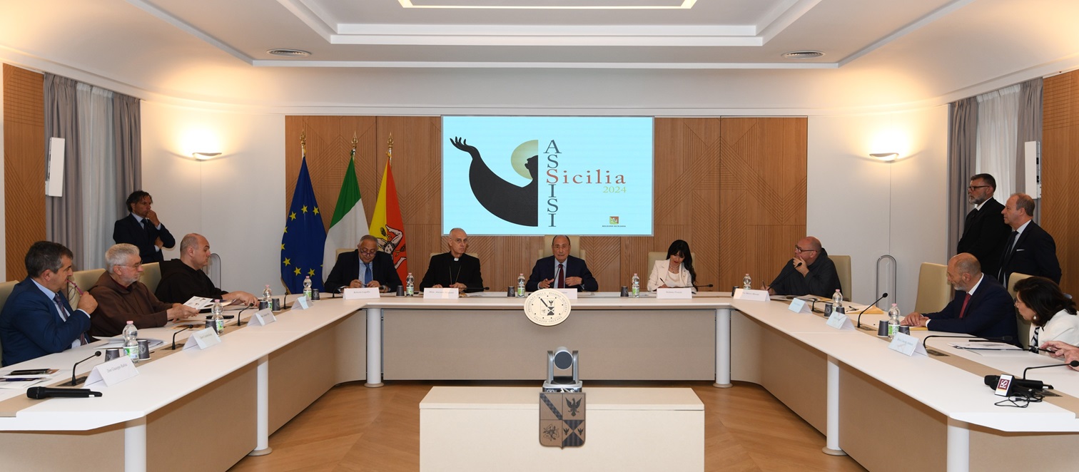 Nell'occasione è stato anche svelato il logo che contrassegnerà tutti gli eventi in grado di attirare migliaia di pellegrini, realizzato dalla Regione Siciliana. Le Chiese dell'Isola doneranno mille litri di olio (60 per ogni diocesi) per alimentare la lampada di Assisi; la quantità eccedente rimarrà a disposizione delle Caritas diocesane. Il dono che la Presidenza della Regione Siciliana ha deciso di offrire per l'occasione è la salvaguardia di due importanti opere d'arte di Assisi: 20 mila euro vengono destinati al restauro del dipinto a olio su tela, con cornice lignea policroma, raffigurante “L'apparizione di San Giuseppe a San Bonaventura”, del XVIII secolo, nella Basilica di San Francesco, e di un altro olio su tela raffigurante “La Madonna sui luoghi della Passione”, del XVII secolo, attribuito a Piergirolamo Crispolti. La Presidenza della Regione sta finanziando anche le 25 lampade in ceramica che stanno attraversando parrocchie e comunità delle diocesi dell'Isola, la stampa di 300 mila immaginette con l'effige di San Francesco e di 4 mila libretti delle celebrazioni del 3 e del 4 ottobre, circa 3 mila kit del pellegrino per tutti coloro che dalla Sicilia raggiungeranno Assisi in quei giorni. Tre di queste lampade, al termine della conferenza stampa, sono state donate dal vescovo di Caltagirone, monsignor Calogero Peri, in rappresentanza della Cesi, ai tre ospiti provenienti da Assisi.
