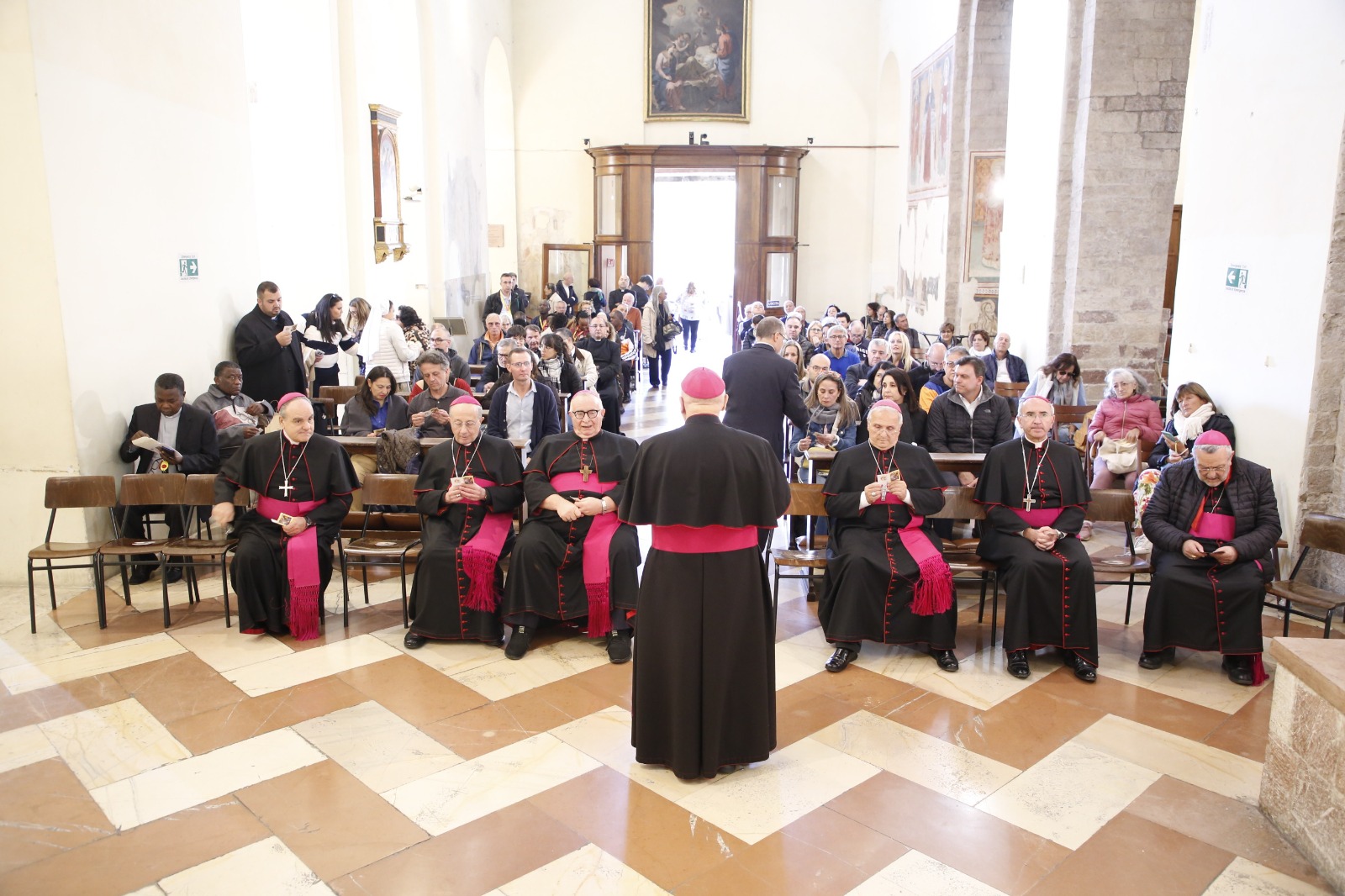 Lo ha detto il vescovo delle diocesi di Assisi – Nocera Umbra – Gualdo Tadino e di Foligno, monsignor Domenico Sorrentino, ai vescovi della regione Abruzzo, giunti ad Assisi in occasione della solennità di San Francesco, per la simbolica offerta dell’olio per la lampada votiva che arde dinanzi alla tomba del Santo. I vescovi dell’Abruzzo sono stati accolti, venerdì pomeriggio 3 ottobre, nella Sala dei Vescovi, alla scoperta dell’antico episcopio al tempo di San Francesco, nella Sala della Spogliazione e nella Chiesa di Santa Maria Maggiore dove è custodito il corpo di San Carlo Acutis.