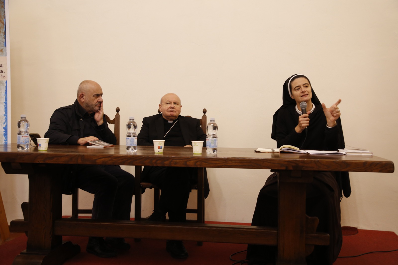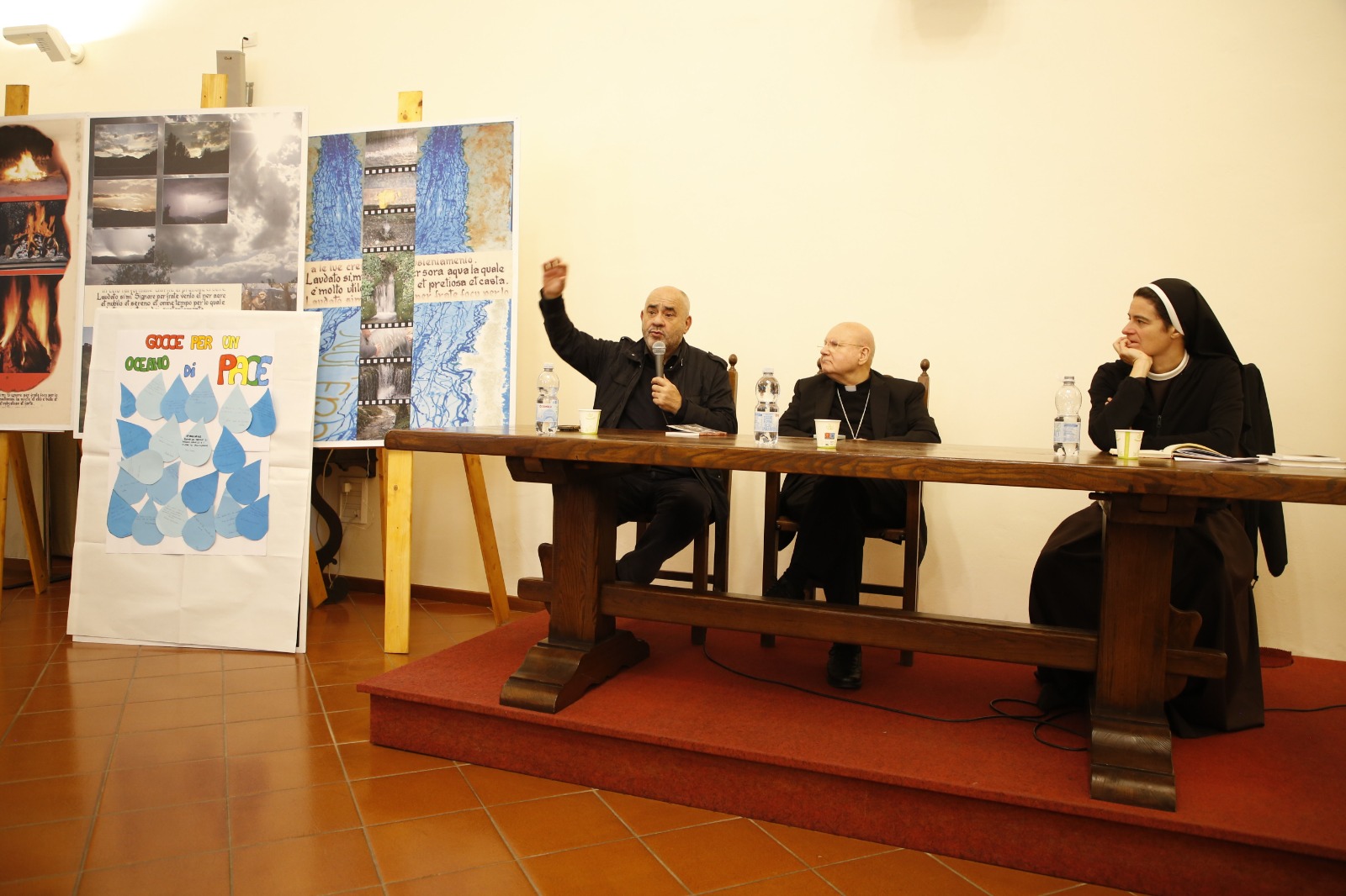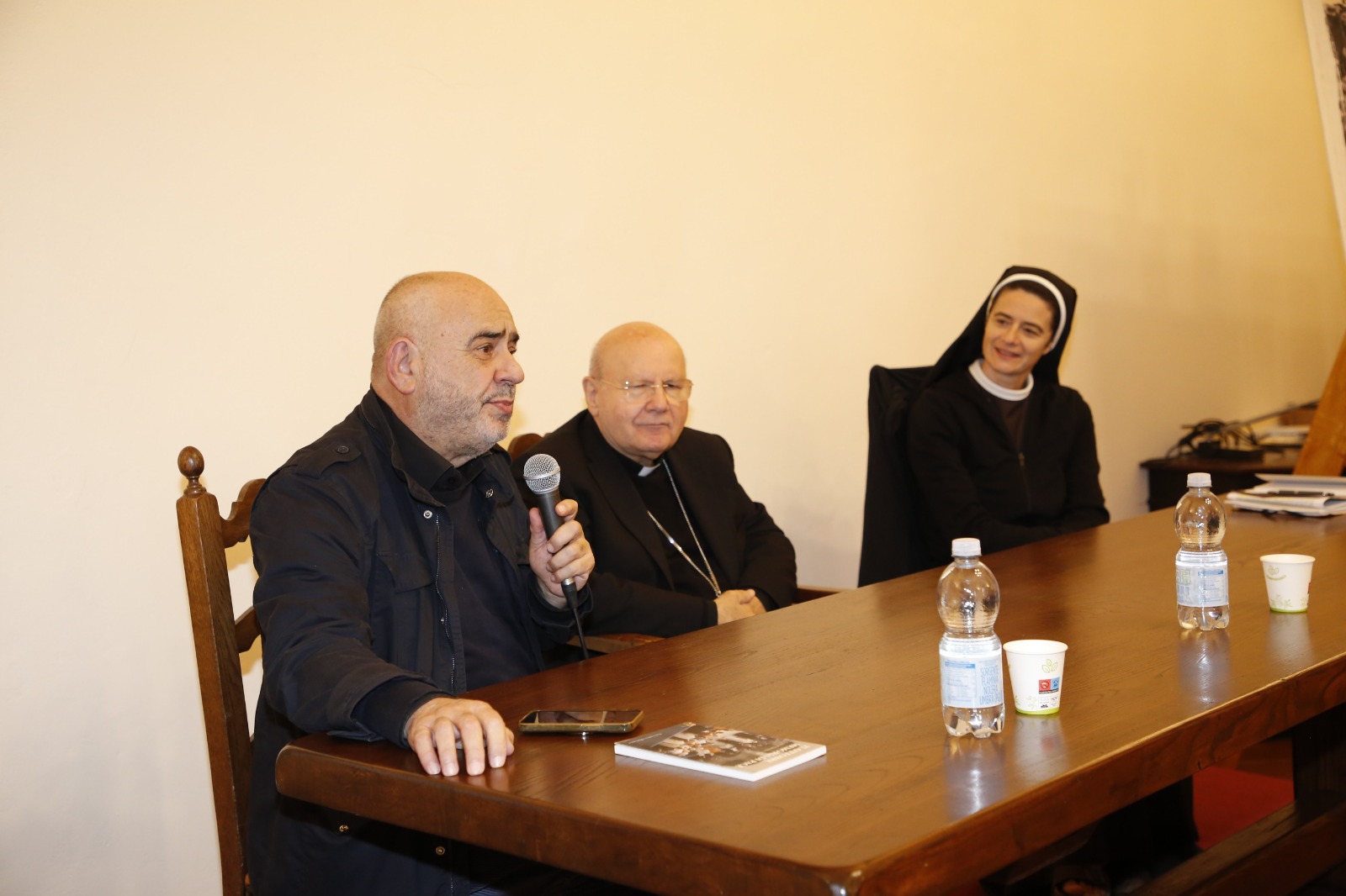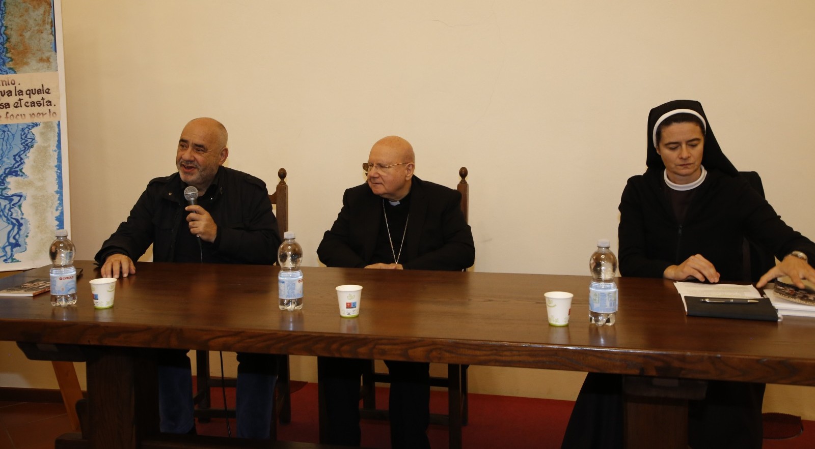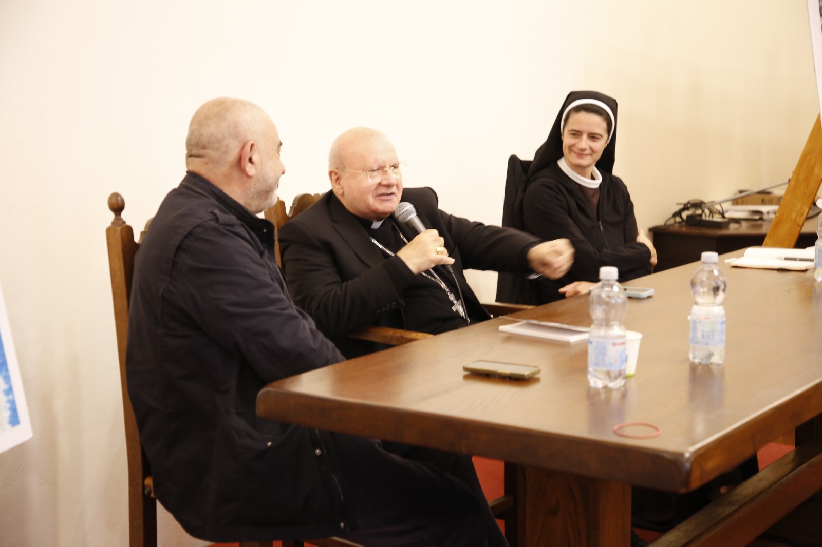 ASSISI - "La pace richiede energia, coraggio e una connessione con ciò che abbiamo attorno. La pace è soprattutto un atteggiamento del cuore che tutti noi dovremmo imparare". Lo ha detto suor Chiara Cavazza, direttrice dell'Ufficio vocazioni dell'arcidiocesi di Bologna nel corso dell'iniziativa dello Spirito di Assisi con gli studenti che si è svolta giovedì 30 ottobre nella sala della Spogliazione del palazzo Vescovile al quale hanno preso parte anche il vescovo delle diocesi di Assisi - Nocera Umbra - Gualdo Tadino e di Foligno, monsignor Domenico Sorrentino e il presidente della commissione diocesana dello Spirito di Assisi, don Tonio Dell'Olio. Gli studenti della V As del liceo Properzio, accompagnati dagli insegnanti Eleonora Luzi, Luigi Proietti e Anna Di Lorenzo e del IV CAT dell'istituto Ruggero Bonghi, con i docenti Elisabetta Apostolico e Daniela Martelli, hanno partecipato attivamente all'incontro rivolgendo diverse domande ai relatori e proponendo le loro riflessioni sulla pace. In particolare i ragazzi del liceo hanno creato un cartellone con le diverse declinazioni della parola pace come rispetto, libertà, accettazione, gentilezza. Il vescovo Sorrentino, ricordando i gesti di pace di San Francesco che proprio nel Vescovado sono avvenuti, ha ribadito che "la pace ci potrà essere solo se si diventa "uomini e donne di pace dentro, nel cuore, nella propria vita quotidiana". Nel moderare il dialogo, don Tonio ha ricordato l'importanza di una pace disarmata e disarmante come ha detto papa Leone IV e ha invitato gli studenti a farsi protagonisti del cambiamento. L'iniziativa, organizzata in collaborazione con l'Ufficio Scuola guidato da Anna Maria Bettuzzi, si è svolta a conclusione dell'edizione dello Spirito di Assisi di quest'anno che ha visto il vescovo Sorrentino e una delegazione diocesana partecipare agli eventi organizzati a Roma dalla Comunità di Sant'Egidio, in occasione del 39esimo anniversario dello storico incontro per la pace del 27 ottobre 1986 voluto da San Giovanni Paolo II.
