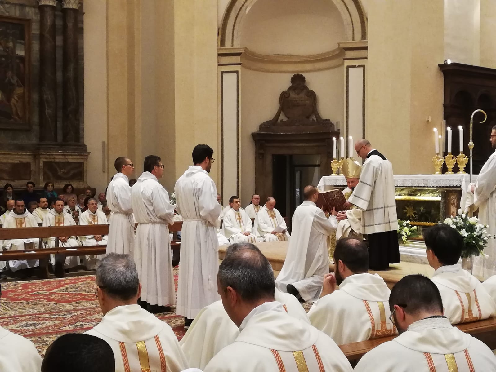Dopo l’omelia sono seguite le interrogazioni e la promessa di obbedienza, la lettura delle litanie dei Santi, l’imposizione delle mani da parte del vescovo sul capo degli eletti e la preghiera di ordinazione. Successivamente si sono succeduti i riti esplicativi con la vestizione degli abiti diaconali, la consegna del libro dei Vangeli e l’abbraccio di pace tra il vescovo e ciascun ordinato.