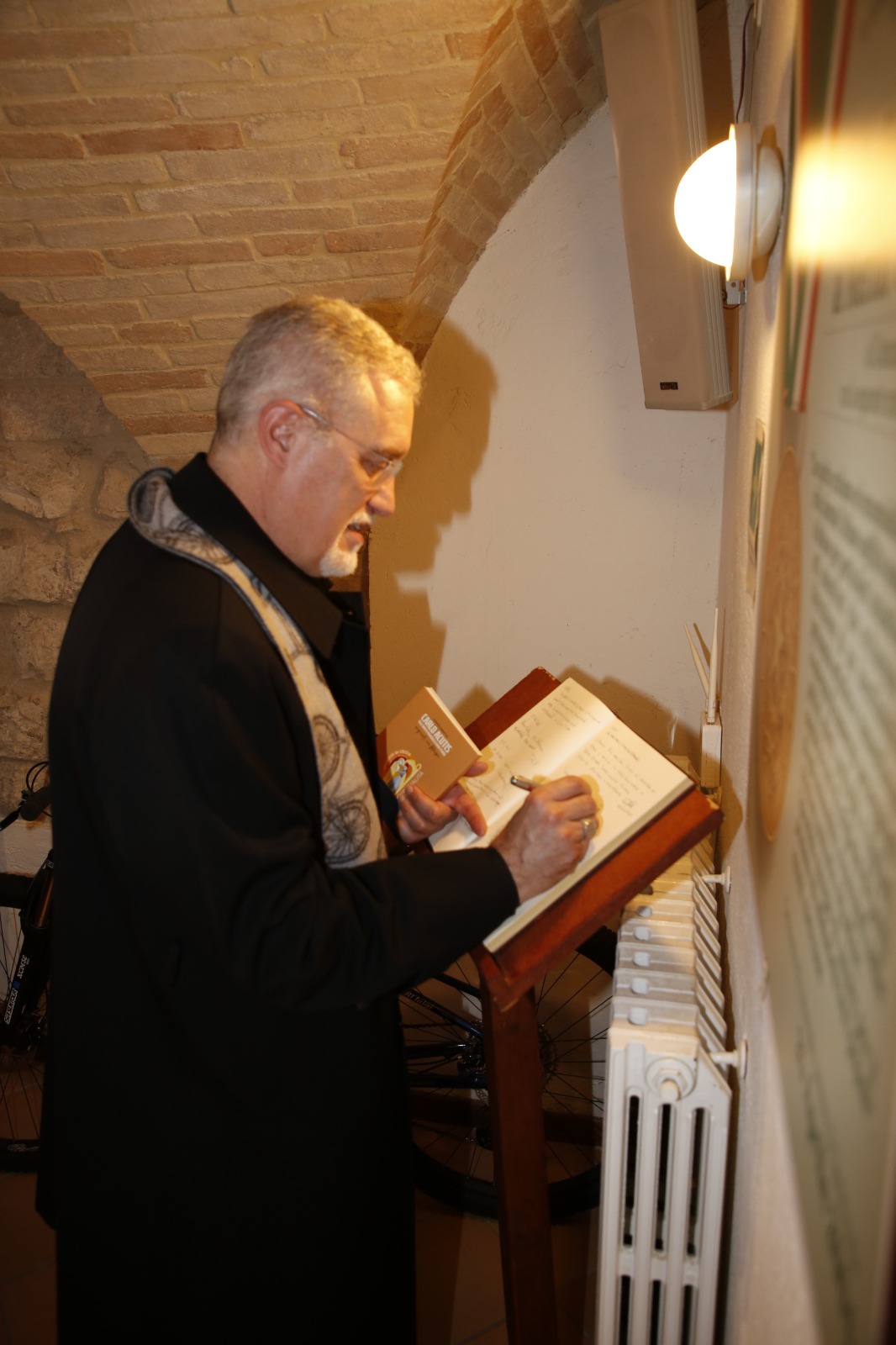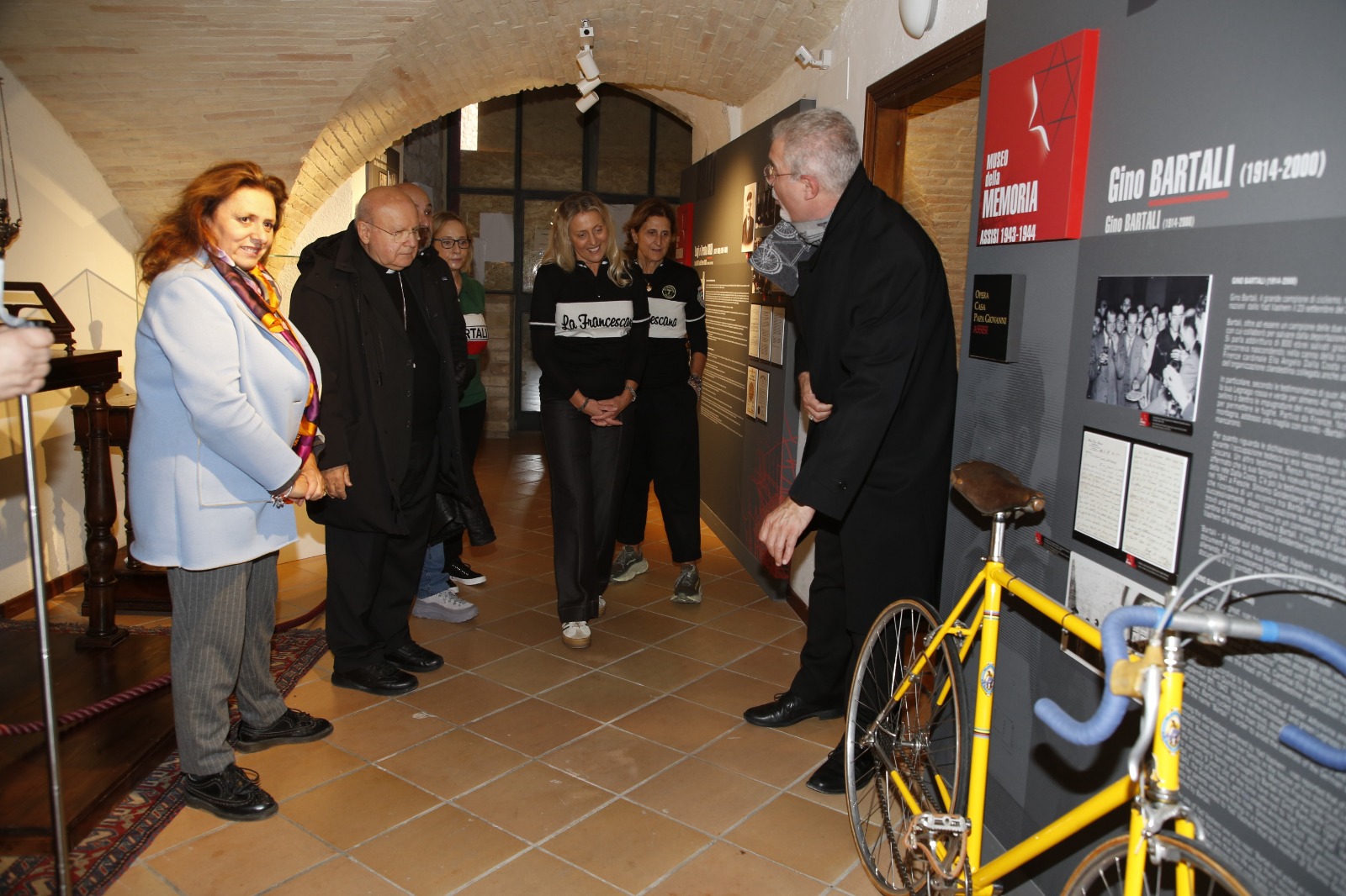 La donazione di questa bici arricchisce il Museo della Memoria, dove si racconta la storia dei 300 ebrei salvati durante la seconda guerra mondiale. Per ringraziare monsignor Nostro del dono, Gioia Bartali ha portato un crocifisso della cappellina di Bartali, anche questa esposta nei locali del Museo assisano.